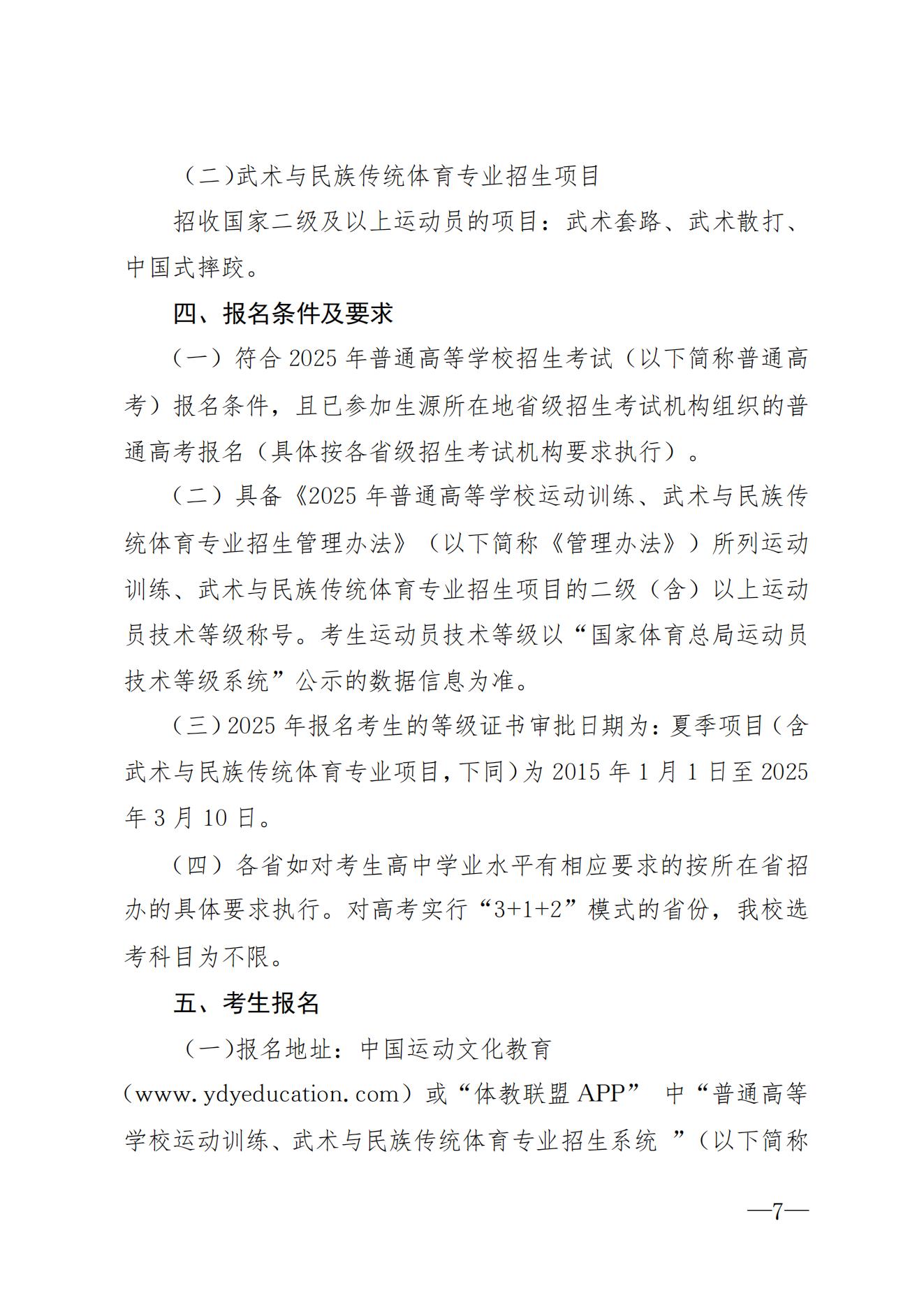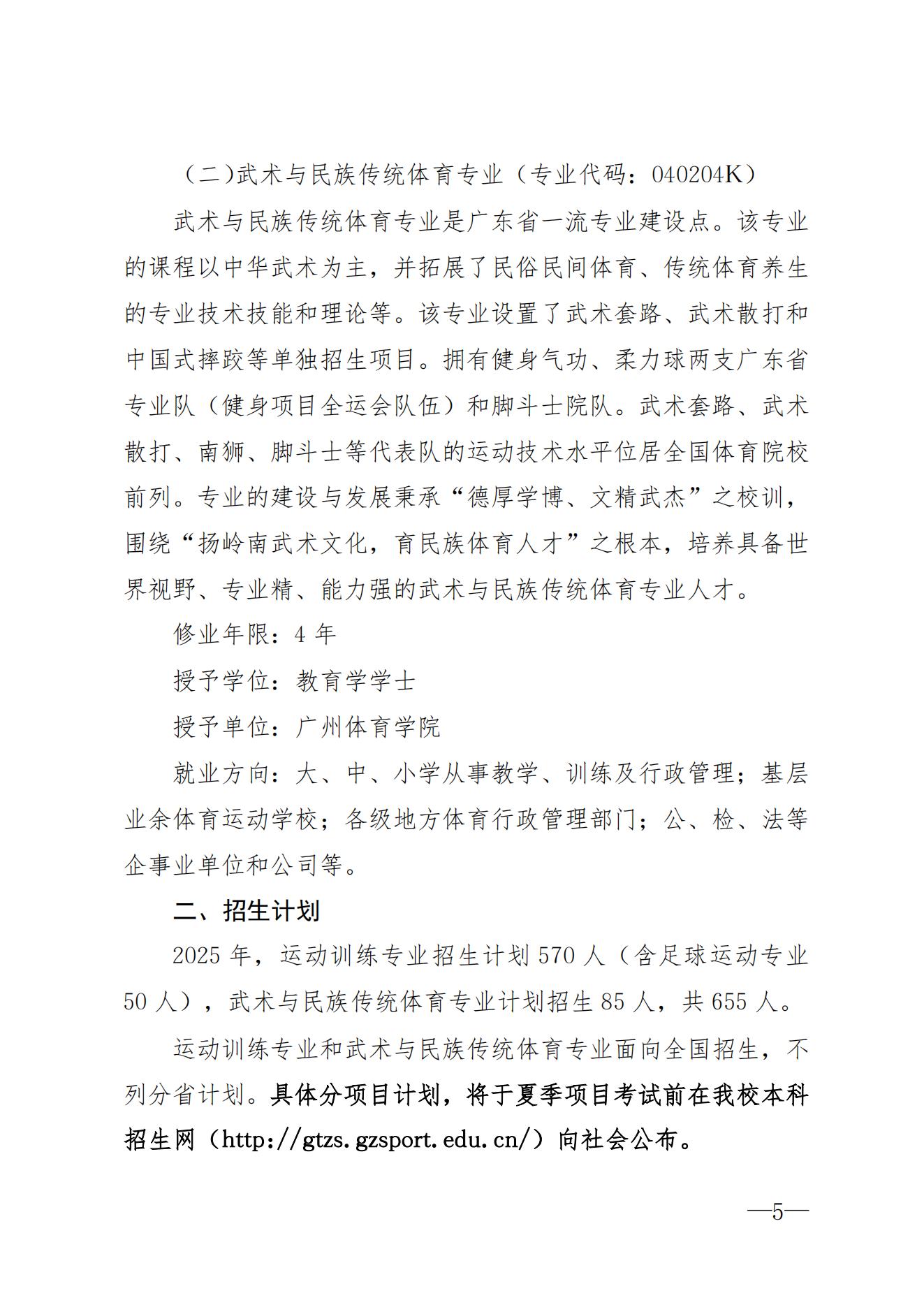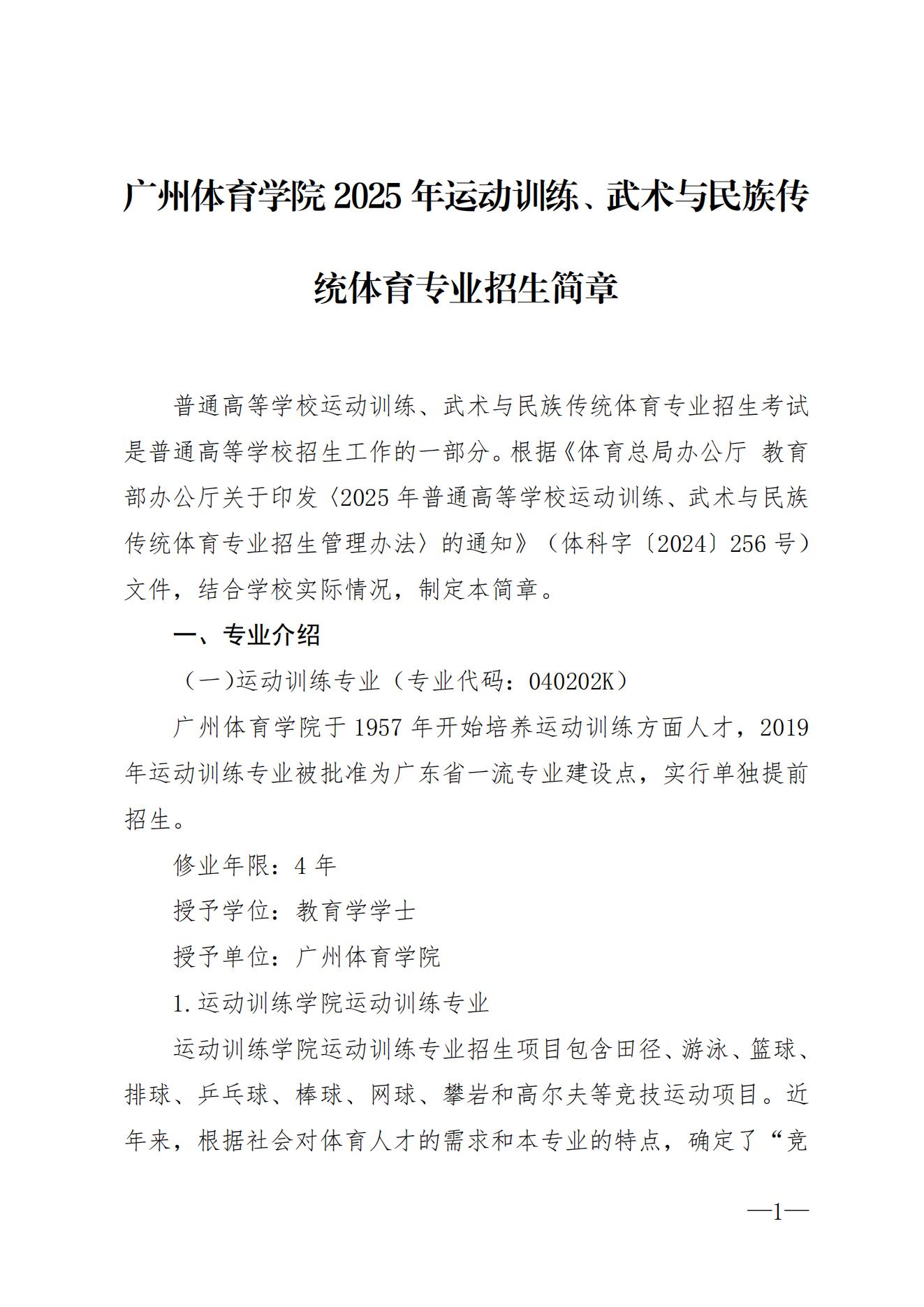 广州体育学院2025年运动训练、武术与民族传统体育专业招生简章