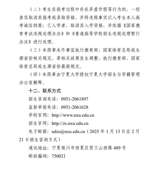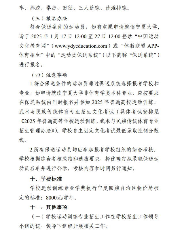宁夏大学2025年运动训练专业招生简章
