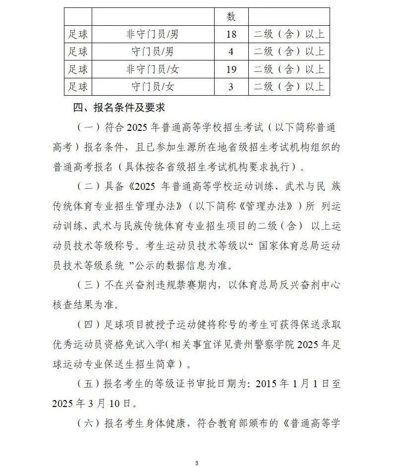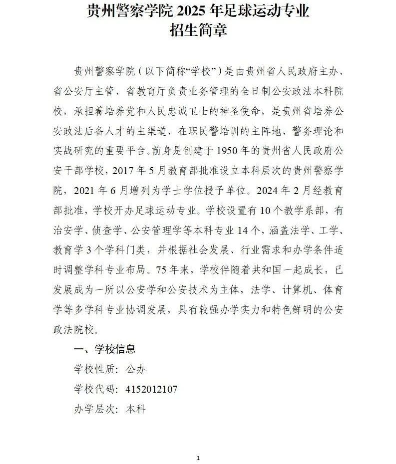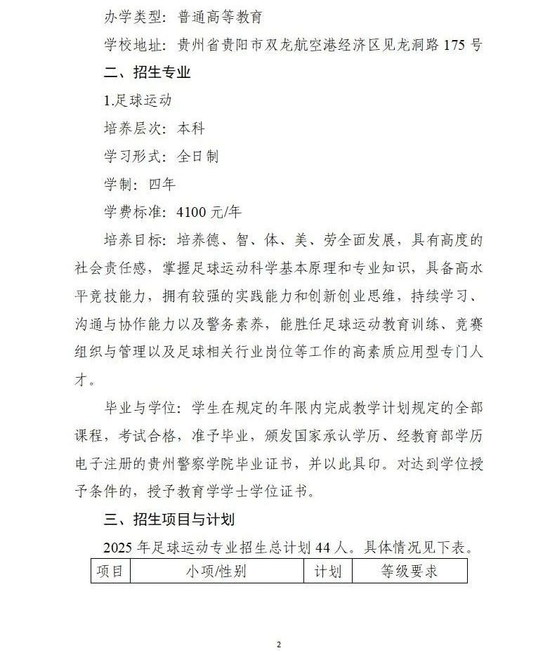 贵州警察学院2025年足球运动专业招生简章