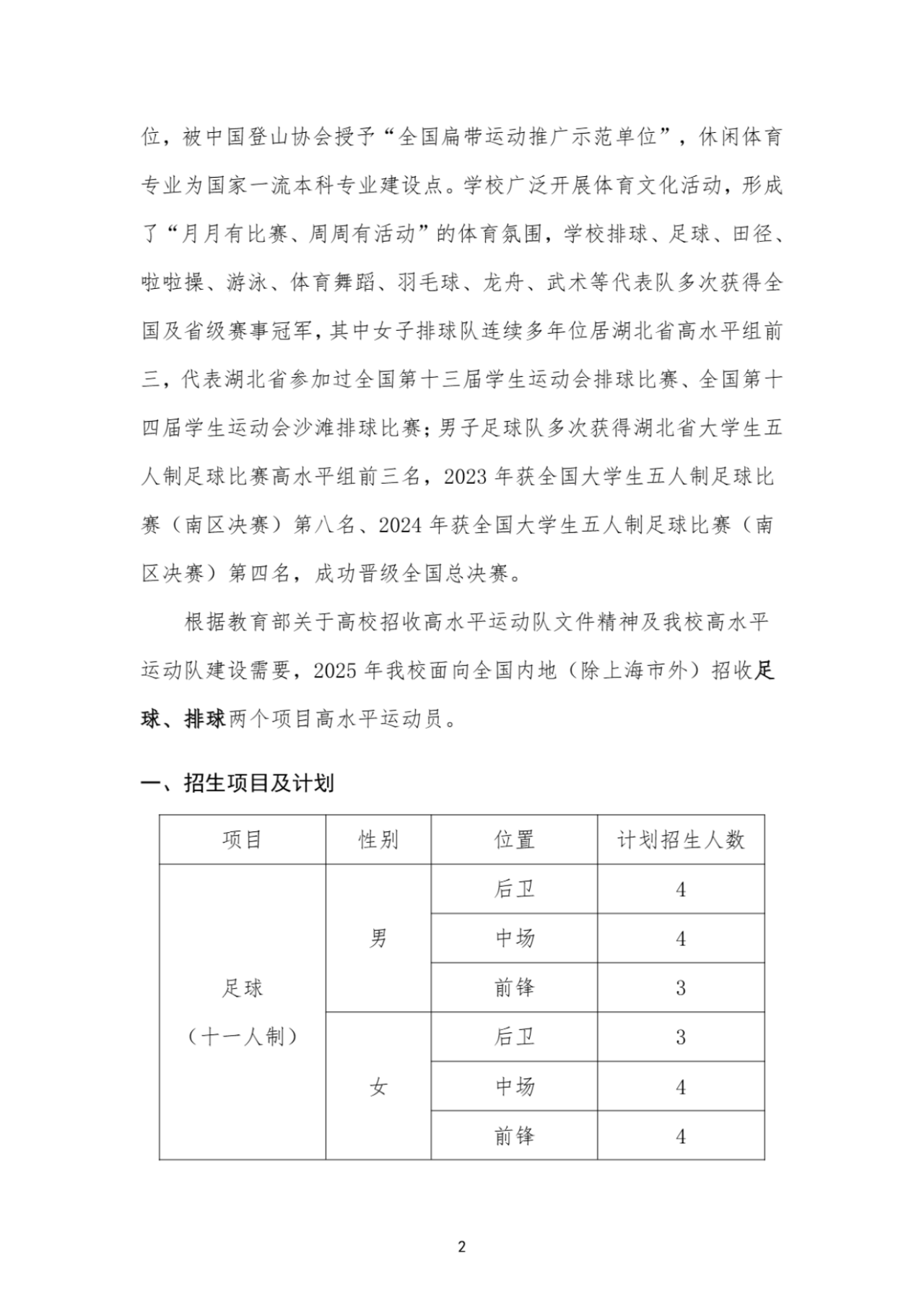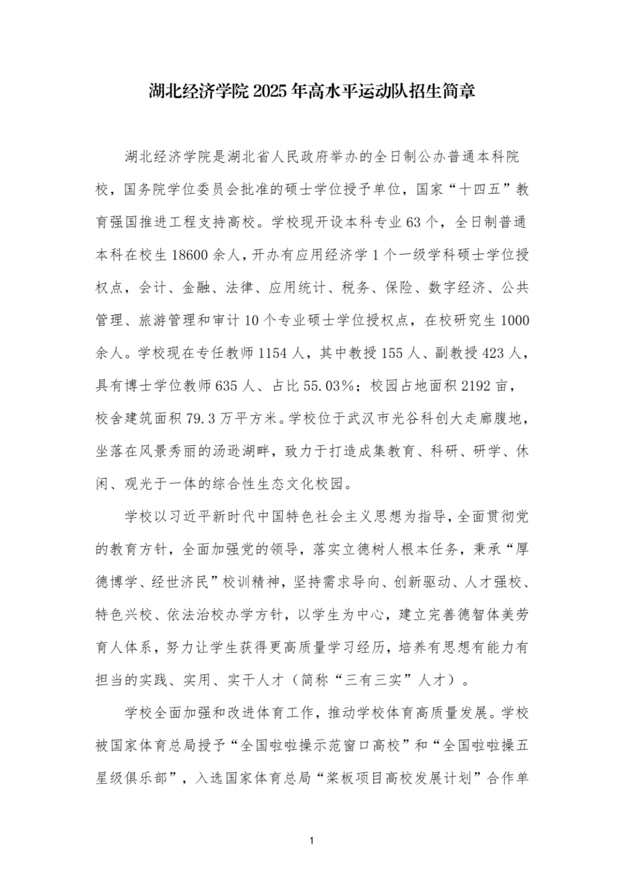 湖北经济学院2025年高水平运动队招生简章