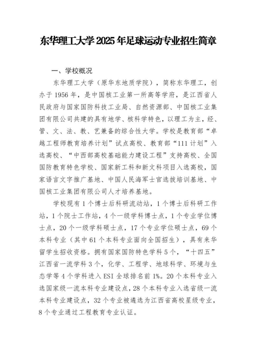东华理工大学2025年足球运动专业招生简章