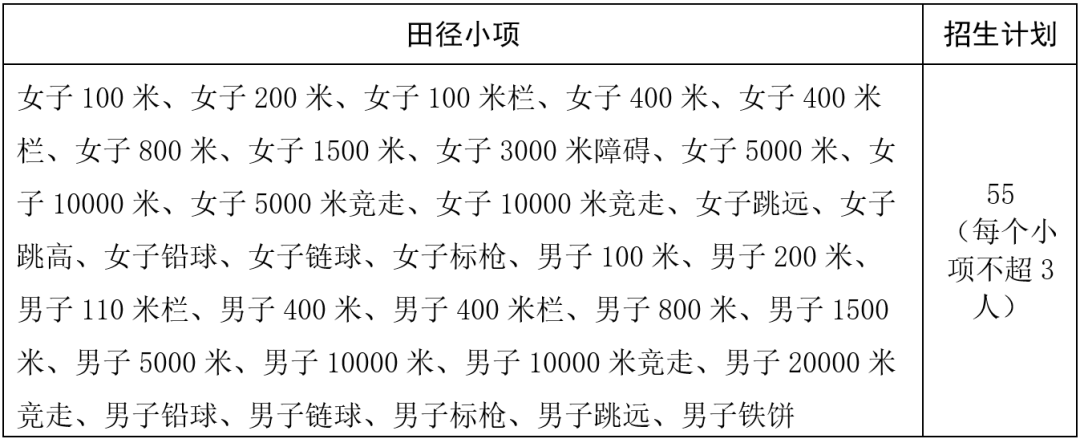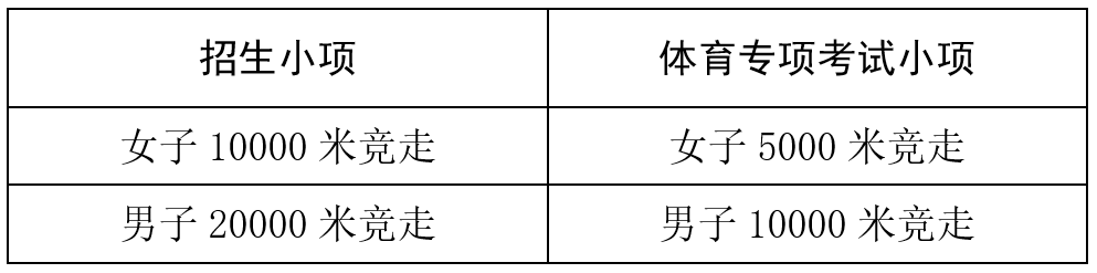 三、报考条件(一)符合生源省份高考报名条件,考生须参加生源省份统一组织的2025年高考报名,取得高考报名号。(二)获得国家一级运动员(含)以上技术等级称号,考生运动员技术等级以“国家体育总局运动员技术等级系统”公示的数据信息为准。(三)考生所持运动员技术等级证书项目须与报考项目一致(田径小项须严格对应一致)。(四)面向除西藏自治区之外的其他省份招生。四、报名和资格审核(一)根据我校确定的报名条件,考生应于2025年2月5日12:00至2月20日12:00通过中国运动文化教育网(www.ydyeducation.com)或“体教联盟APP”中“高水平运动队招生系统”报名,我校于2025年2月28日前完成报名资格审核。资格审核通过的考生于2025年3月1日12:00至3月10日12:00在系统完成缴费。我校高水平运动队招生报名志愿个数限制为2个。(二)考生应按照要求在系统上传以下材料:1.填写完整并由本人签字的《鲁东大学2025年高水平运动队招生报名表》(附件)PDF扫描件;2.身份证正反面照片;3.2025年普通高校招生报名信息确认单或高考报名表;4.国家一级运动员(含)以上技术等级证书照片。(三)女子10000米竞走、男子20000米竞走招生小项与考试小项对应关系如下表,其余报考小项与体育专项考试小项一致。五、考试(一)体育专项考试根据教育部有关规定,高水平运动队招生体育专项考试由国家体育总局统一组织,我校不再组织校考。考试时间、地点等详见国家体育总局公布的具体安排。(二)文化考试考生须参加2025年全国统一高考文化课考试。六、合格标准与录取政策(一)体育专项考试合格标准1.篮球项目:根据各位置招生计划,按专项考试成绩由高到低择优确定合格名单。同分考生,实战能力得分高者优先。2.田径项目:按专项考试成绩择优确定合格名单,各项目最多3人。评分成绩相同考生,同一项目内原始成绩优者优先。不同项目间,本简章公布的小项在前者优先。3.已被体育单招拟录取的考生视为自动放弃高水平运动队录取资格,将不再列入体育专项考试合格名单之内。4.体育专项考试合格名单确定后,学校进行公示并按要求上传至教育部“阳光高考”平台。(二)文化成绩合格标准考生高考文化成绩须达到生源省份普通类本科批次录取控制分数线的80%。(三)录取高考成绩公布后,我校依据考生高考文化成绩和体育专项考试合格名单,确定入围考生名单并公示,同时上传至教育部“阳光高考”平台。公示无异议且入围考生高考填报志愿时报考鲁东大学者,按照相关规定办理录取手续。我校高水平运动队招生录取专业为体育教育,不可录取至普通类专业。体育教育专业在高考改革省份不提选考科目要求。七、监督机制鲁东大学纪委(监察专员办公室)对学校高水平运动队招生工作进行监督,受理举报或者投诉。八、联系方式咨询电话:0535—6672791(鲁东大学教务处招生办公室)监督电话:0535—6013032〔鲁东大学纪委(监察专员办公室)〕鲁东大学官方网站:https://www.ldu.edu.cn鲁东大学本科招生网:https://zs.ldu.edu.cn通讯地址:山东省烟台市芝罘区红旗中路186号鲁东大学教务处,邮政编码:264025。九、其他规定(一)对在高水平运动队招生体育专项考试或者文化考试中被认定为作弊的考生,以及提供虚假材料取得高水平运动队报考资格的考生,一经发现并核实,取消其当年报考及录取资格;已被录取进入鲁东大学学习者,取消入学资格并注销学籍。新生入学后进行全面复查。复查不合格者,学校将按有关规定予以处理。(二)学费按照山东省发展和改革委员会、省财政厅、省教育厅核定的学费标准及有关规定收费。(三)鲁东大学高水平运动队招生所有事宜均由教务处招生办公室负责答复。考生和家长因轻信其他人员而造成的一切后果,鲁东大学概不承担责任。(四)本简章如有与国家法律、法规、规章或者上级有关政策不符之处,以国家法律、法规、规章和上级有关政策为准。未尽事宜,按教育部、生源省(区、市)有关规定和鲁东大学2025年本科招生章程执行。(五)本简章由鲁东大学负责解释。 附件(点击文末【阅读原文】查看)【附件:鲁东大学2025年高水平运动队招生考试报名表.docx】 END
