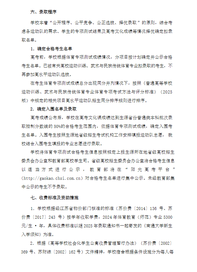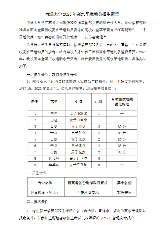南通大学2025年高水平运动员招生简章