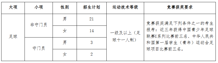 (五)第一志愿考生需具备我校招生要求的运动员技术等级称号和竞赛获奖要求; 第二志愿考生需具备我校招生要求的运动员技术等级称号。