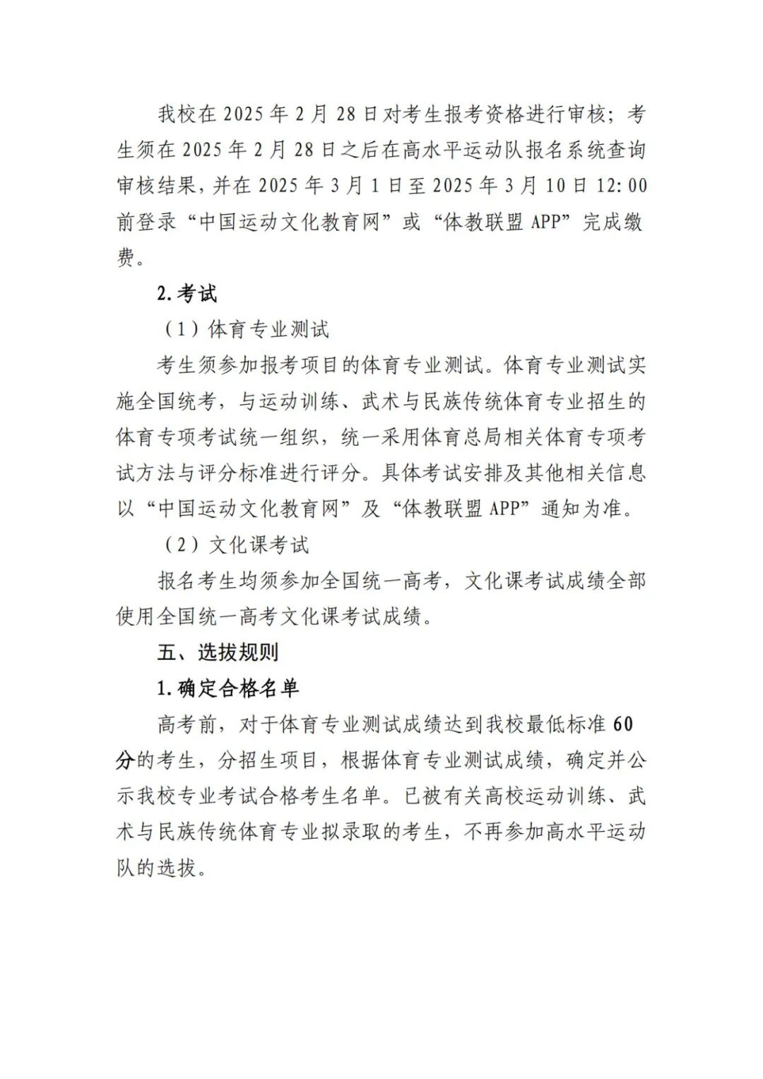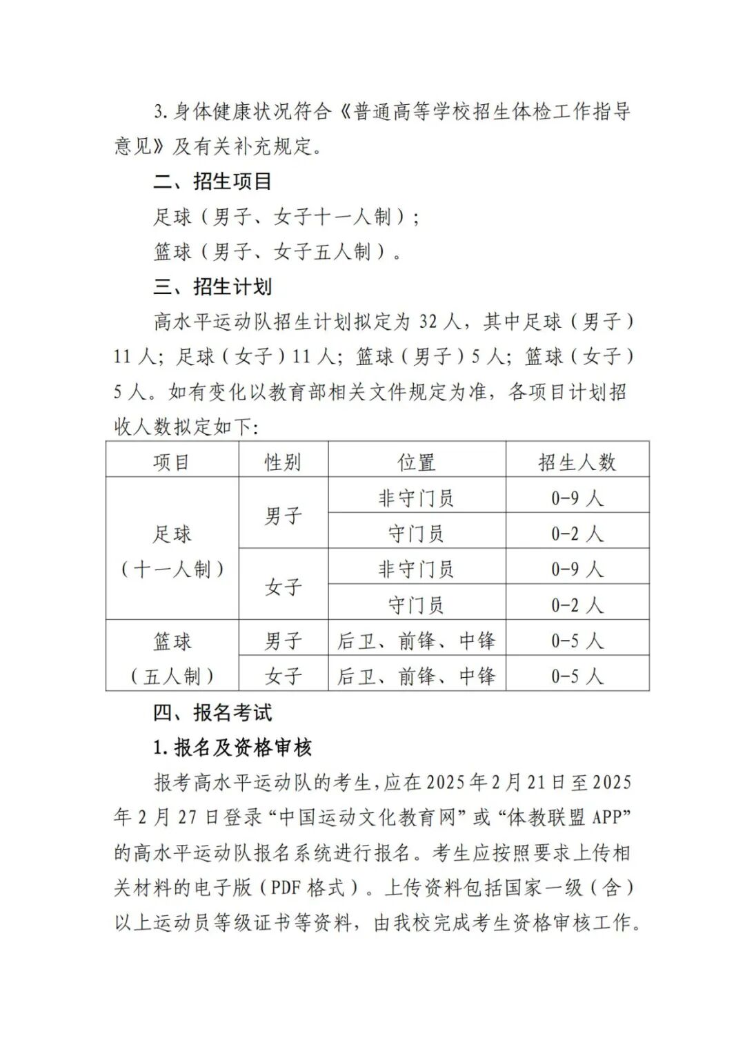 2025年高水平运动队招生基本要求