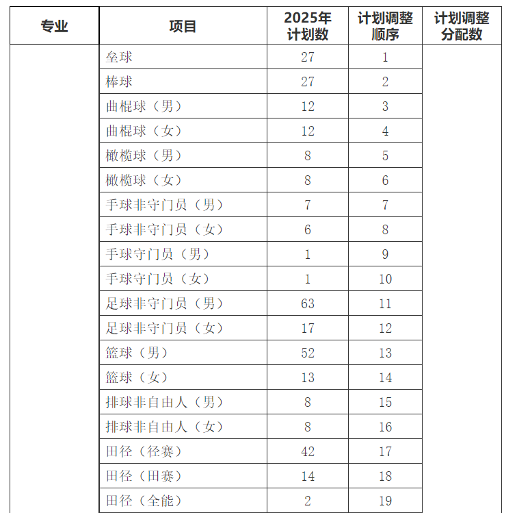 3.运动训练专业和武术与民族传统体育专业之间不进行计划调整。