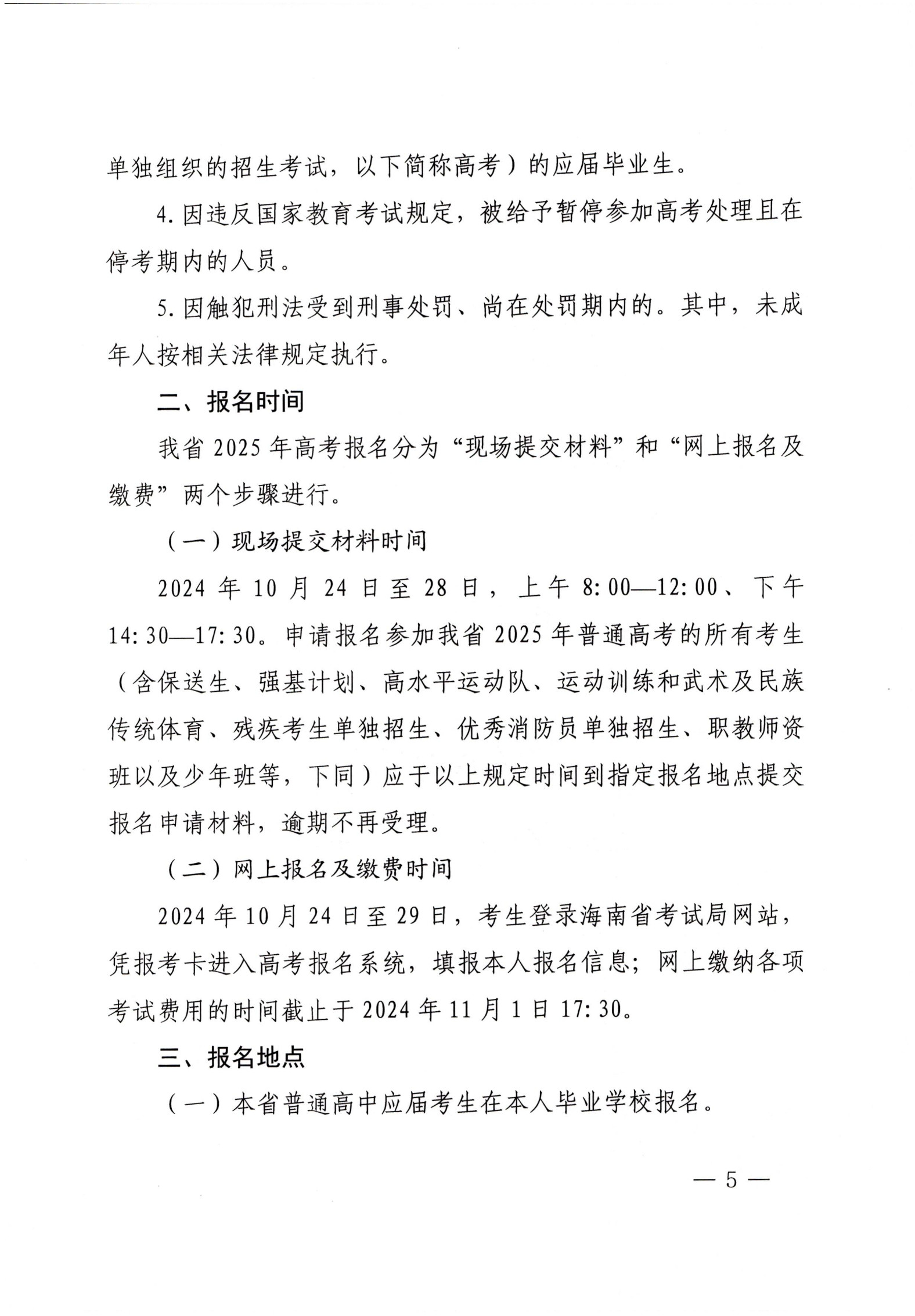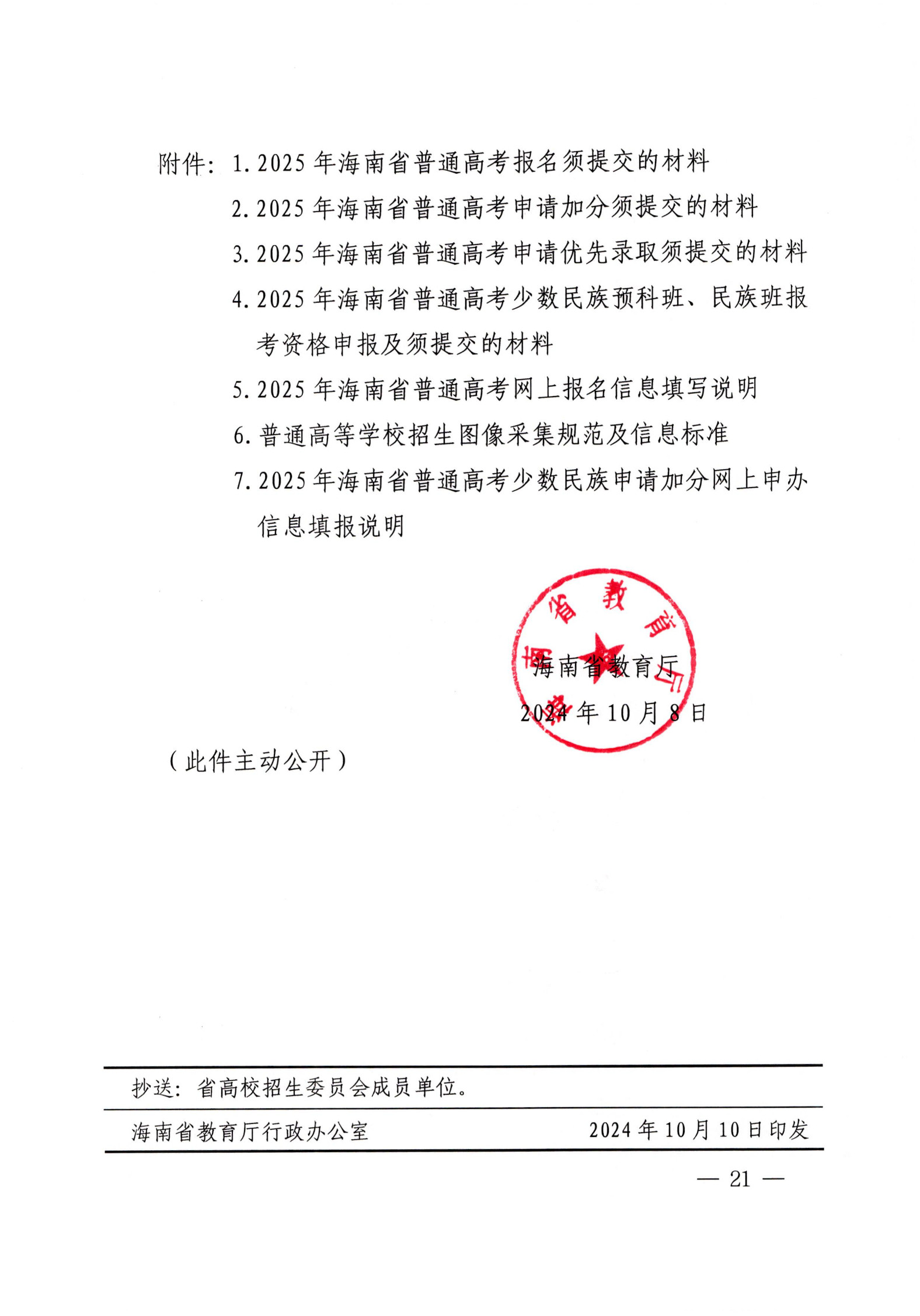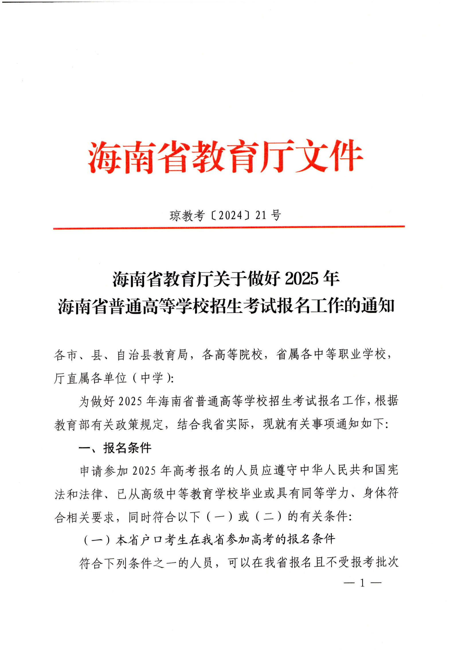 海南省教育厅关于做好2025年海南省普通高等学校招生考试报名工作的通知