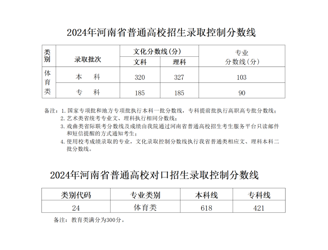 2024年河南省普通高校招生录取控制分数线