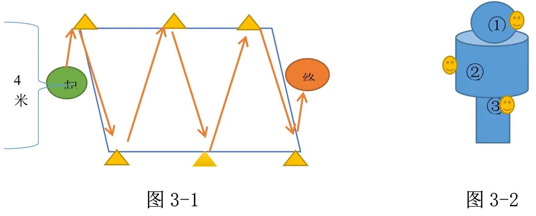 a.受试者从起点开始运球,脚触球则立即开表计时。运球逐个绕过标竿后射门、球越过球门线时则停表。