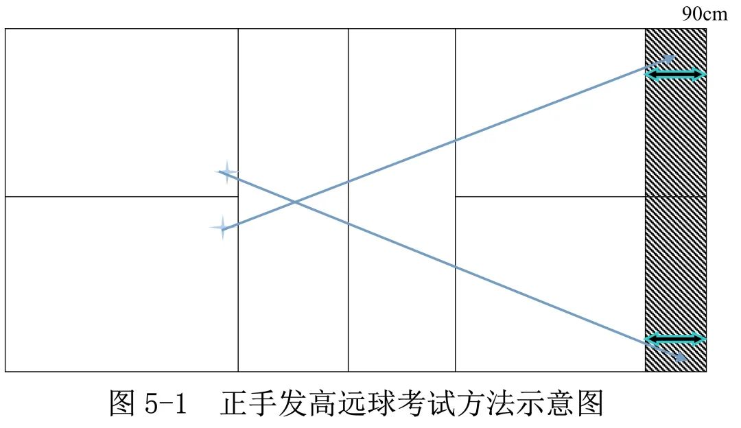 如图所示。考生在发球区用上手、勾手或跳发球10次,要求所发出的球有一定的速度和力量,对飞行速度慢、力量小的发球,则在相应得分中扣去0.3分。