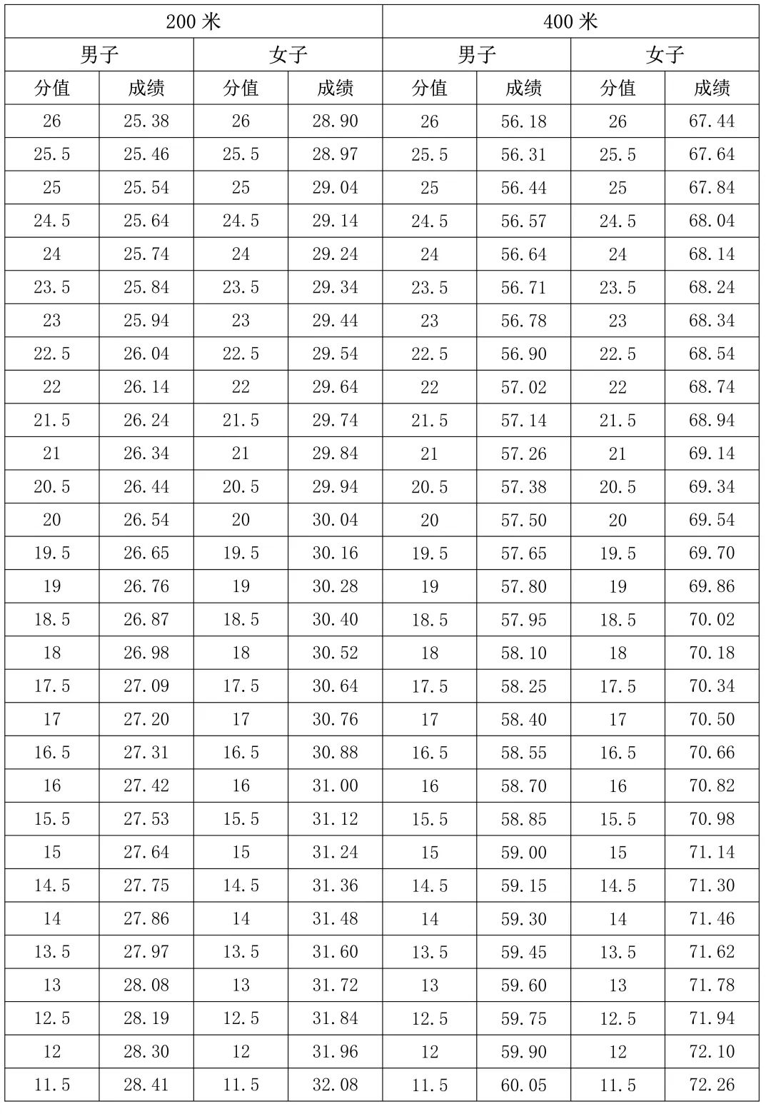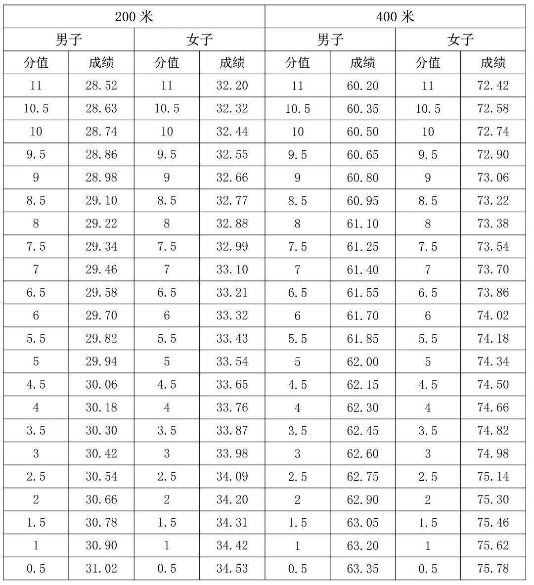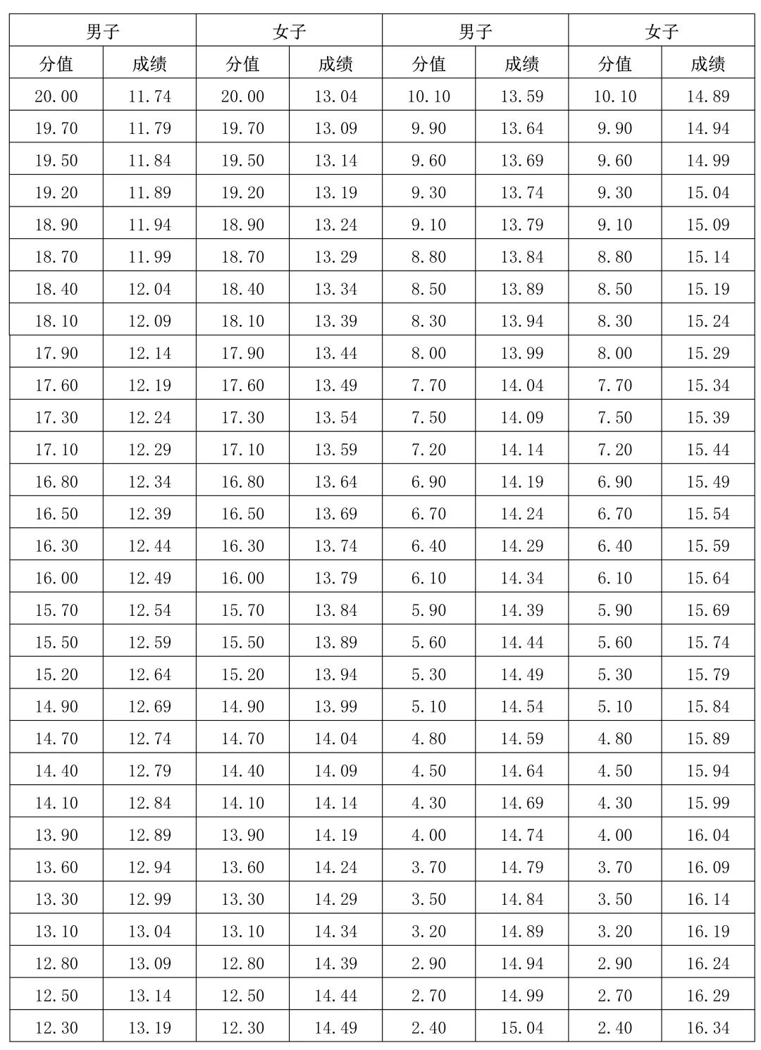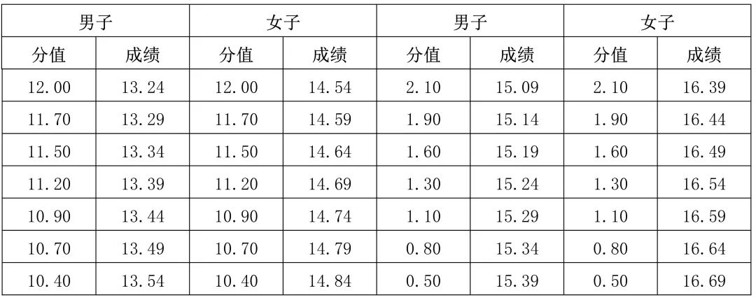 2.男子110米栏、女子100米栏、1500米跑评分表(单位:秒)