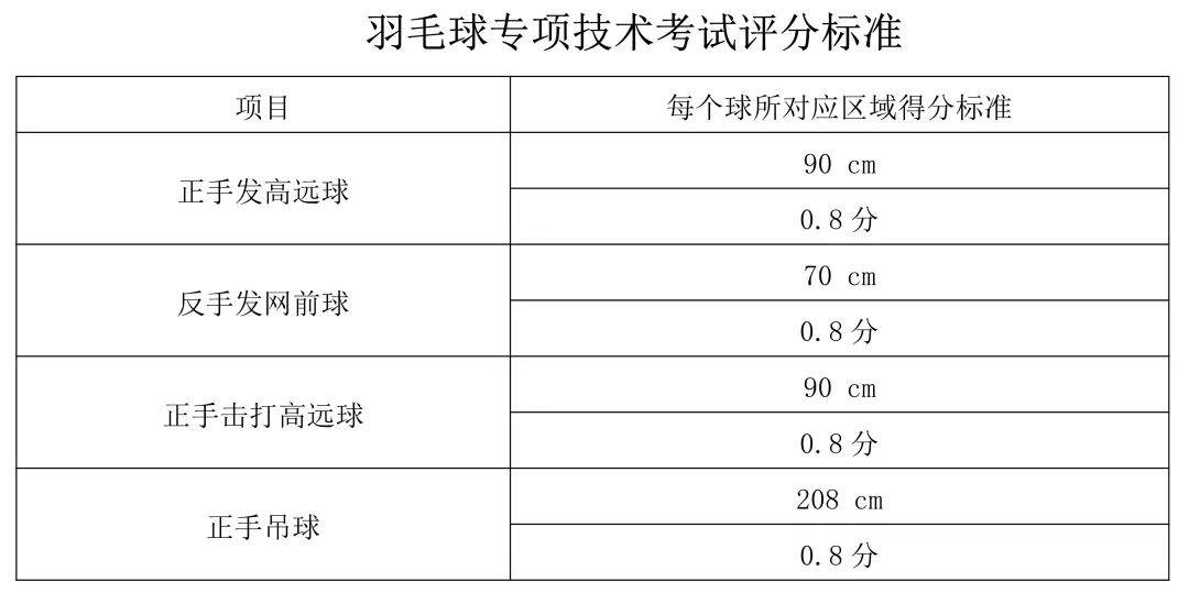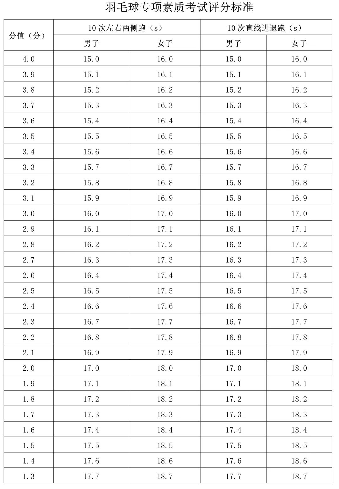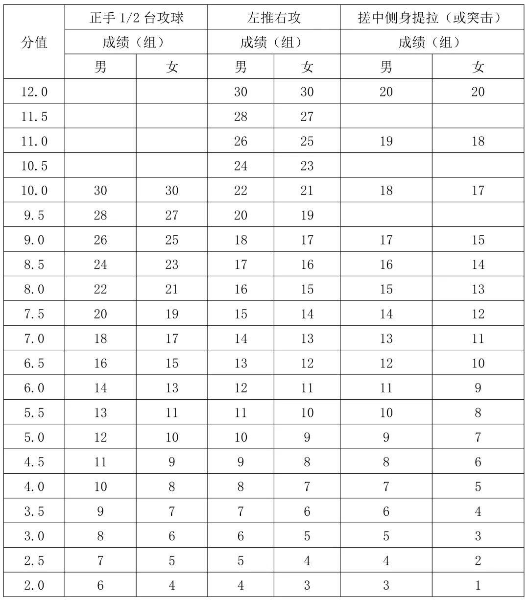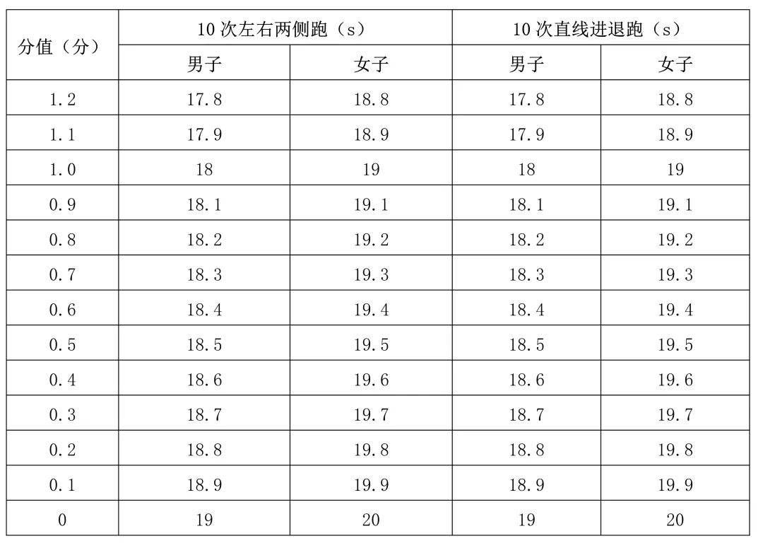 专项素质满分为12分。每项测验内容达到要求者可得评分表规定的满分。达不到要求者视其情况扣分。其中达标项目评分标准为: