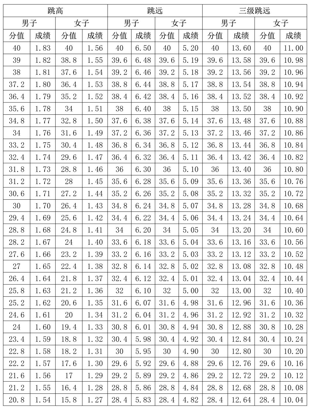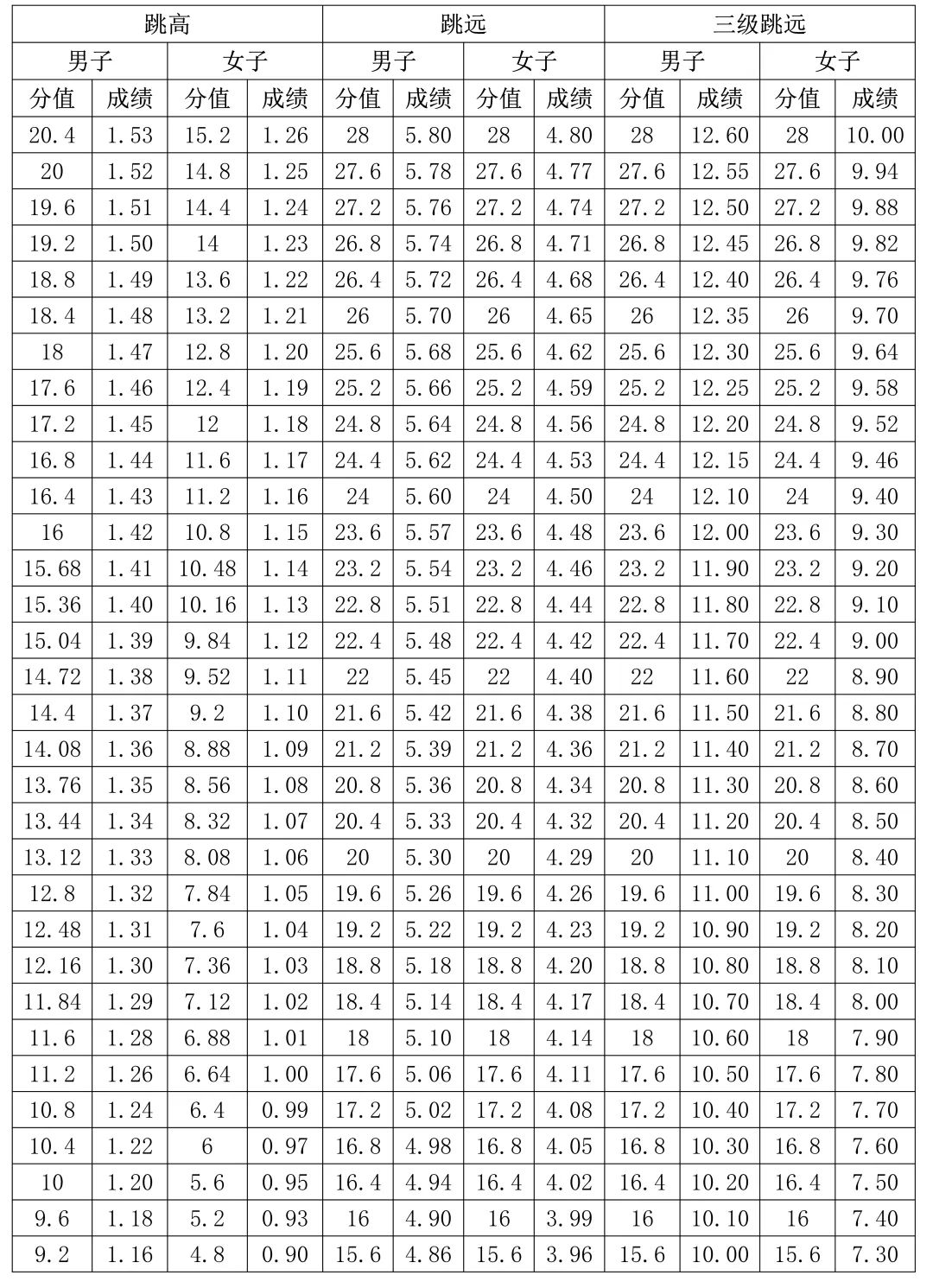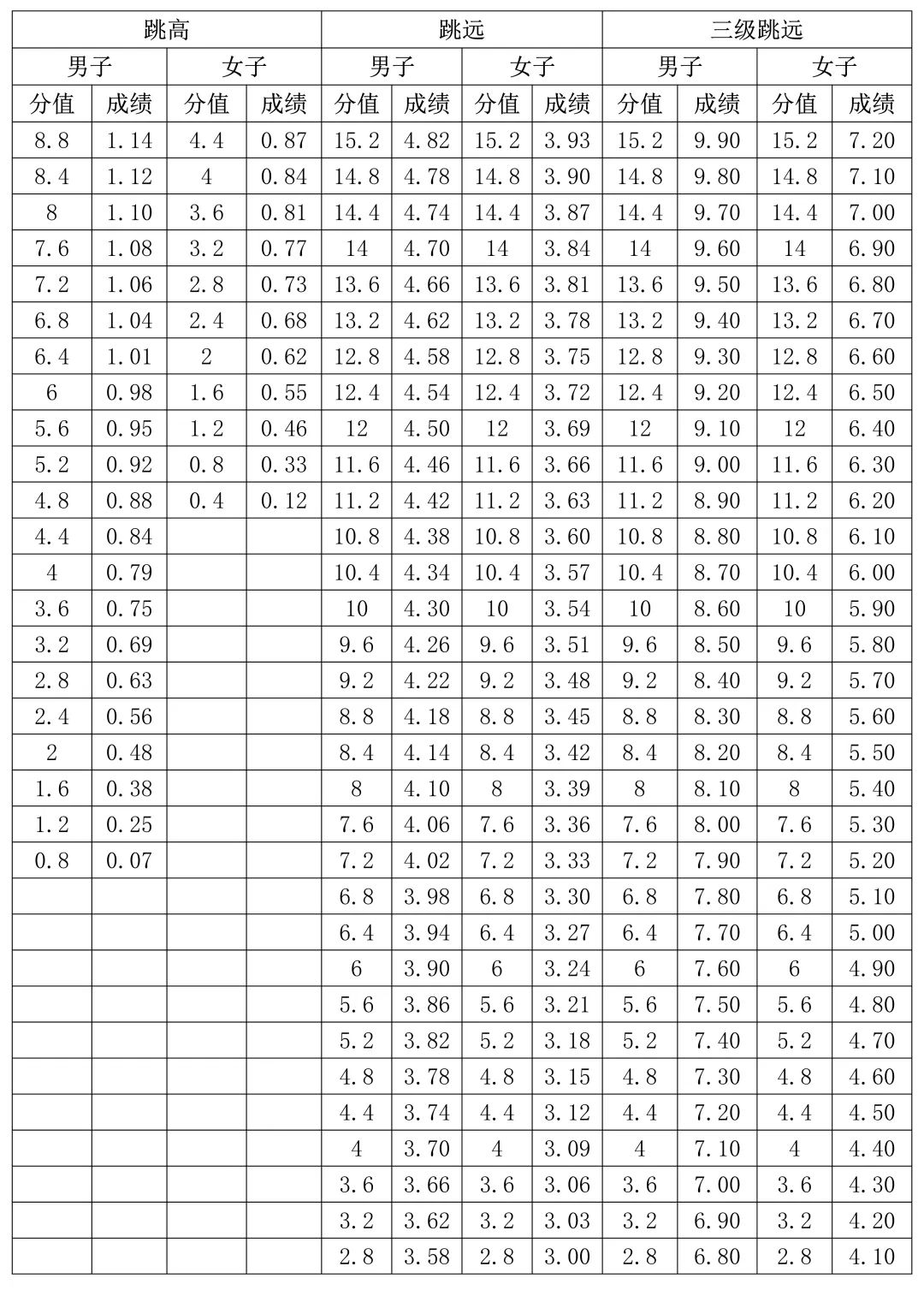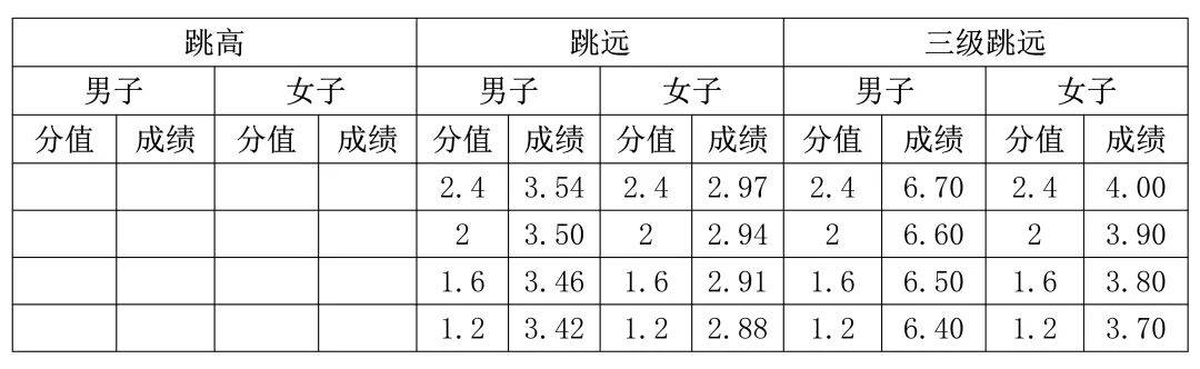 3.跳高、跳远、三级跳远专项评分表(单位:米)
