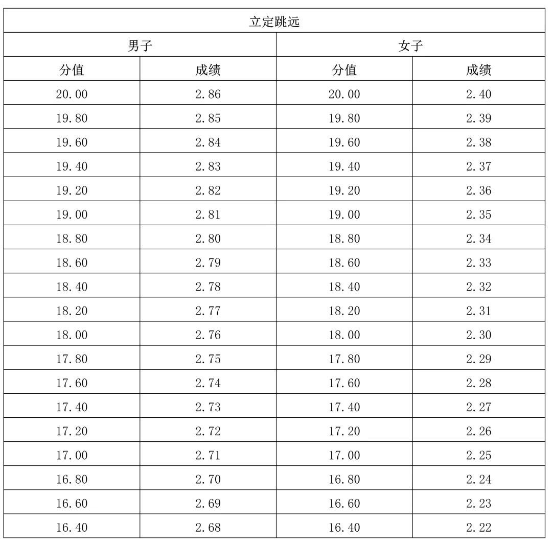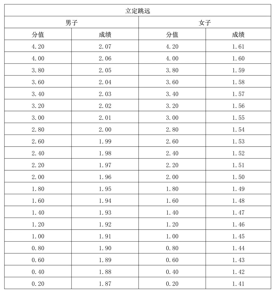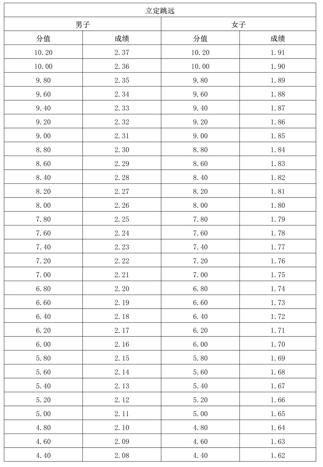 3.跳高、跳远、三级跳远专项评分表(单位:米)