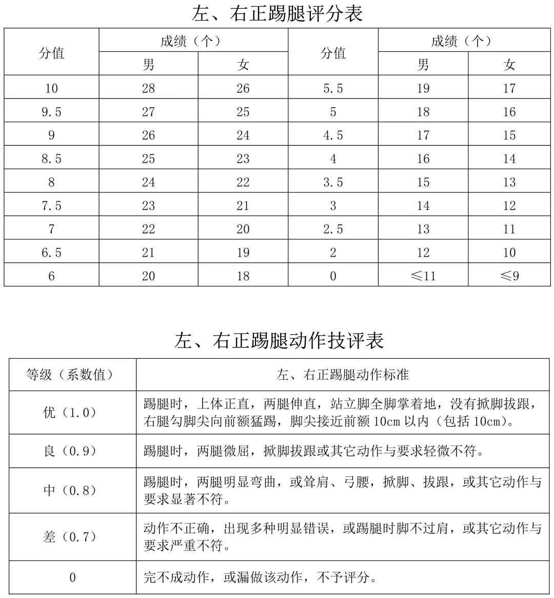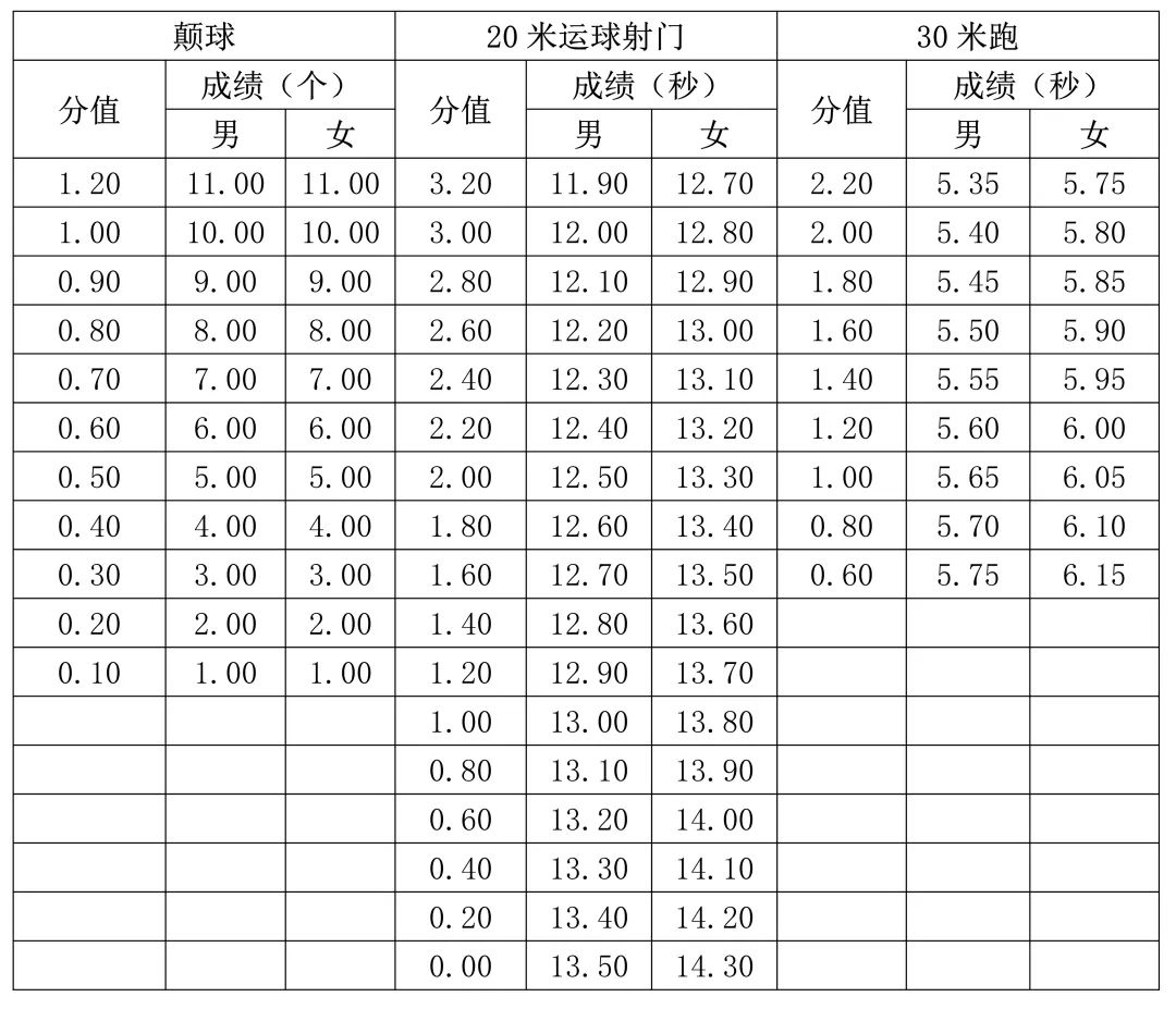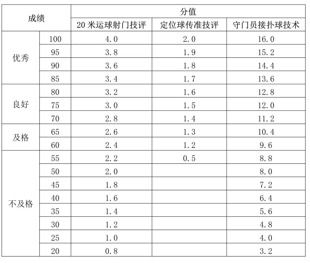 2.20米运球射门技评、定位球传准技评、守门加试定性评分表