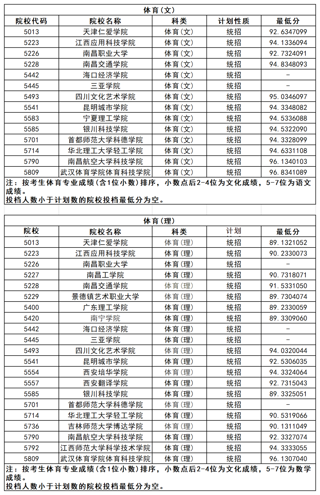 山西省2024年普通高校招生第二批本科C类(体育类)院校投档最低分