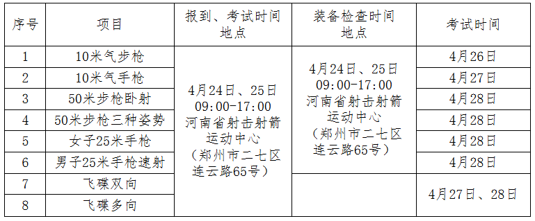 2025年普通高等学校运动训练、武术与民族传统体育专业招生及高校高水平运动队招生射击专项考试考生须知(河南体育学院考点)