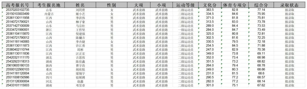 正式录取名单以教育部、国家体育总局及各省招生部门审核通过为准。