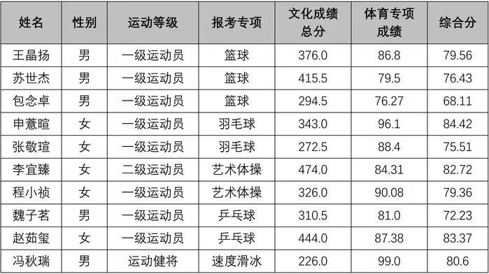 东北大学2025年运动训练专业一志愿拟录取名单公示