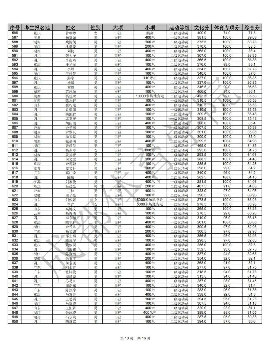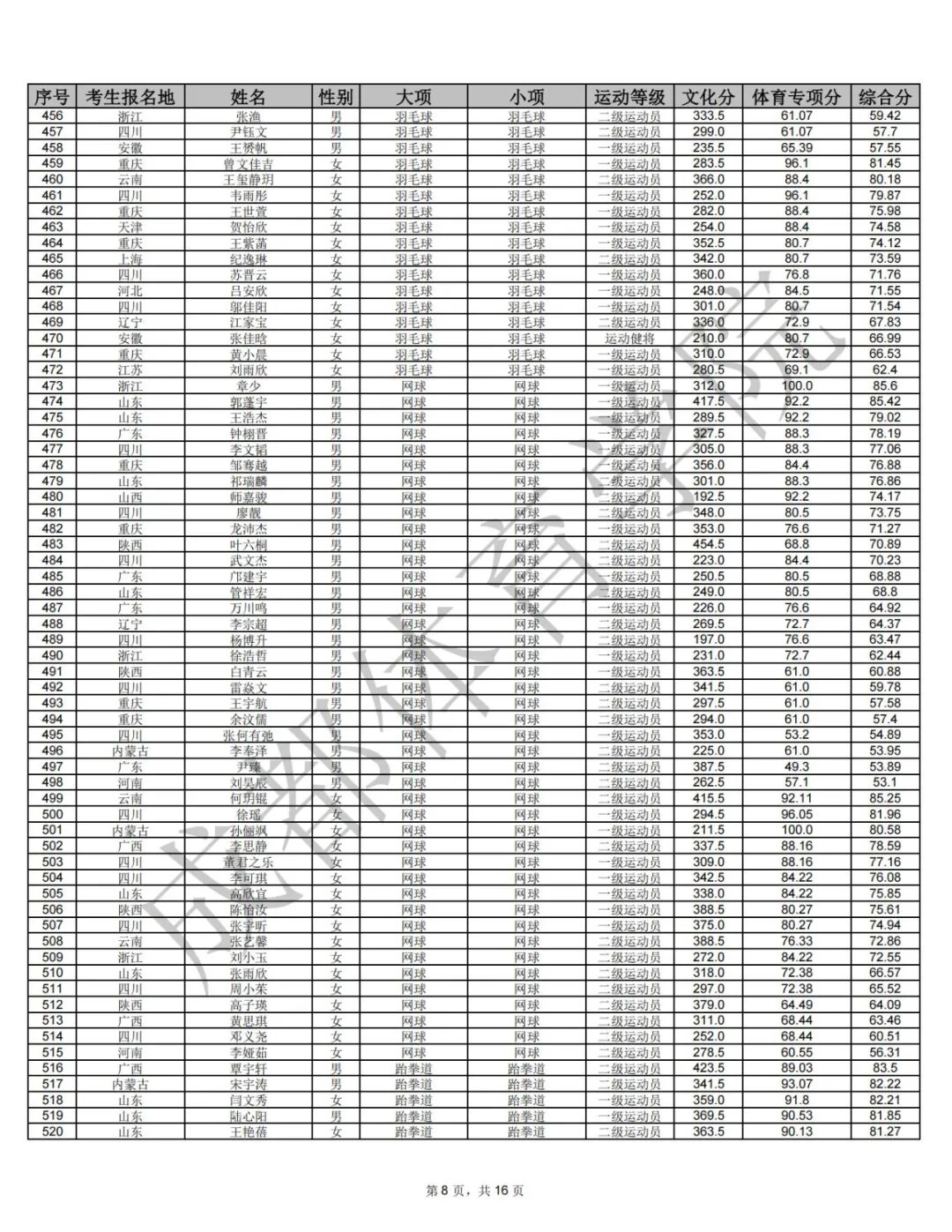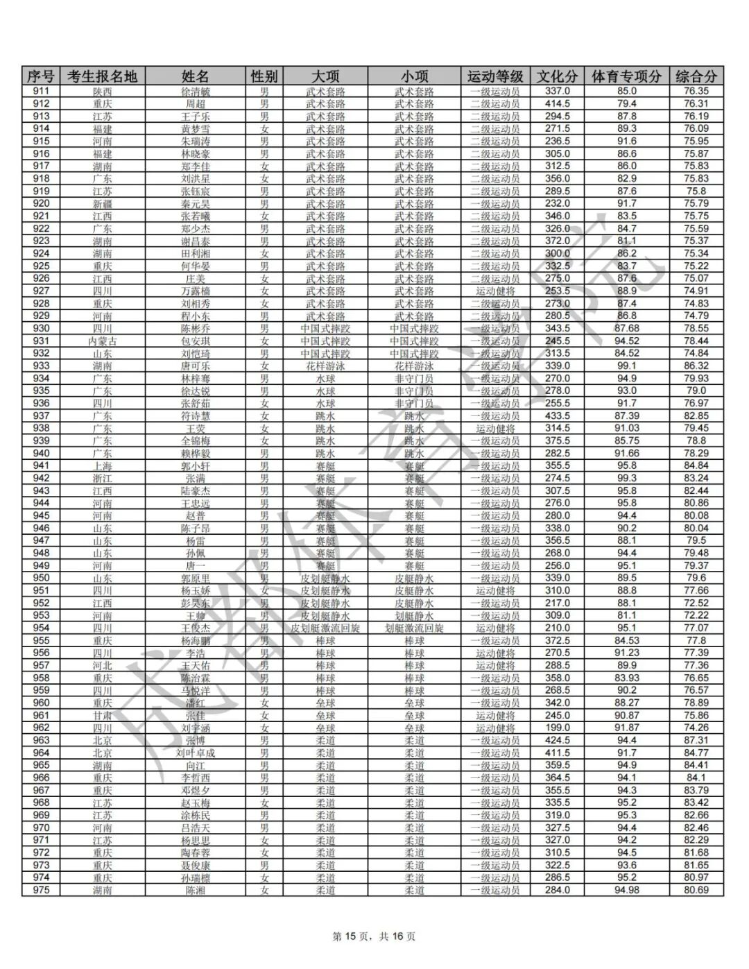 附件:成都体育学院2025年体育单招第一志愿拟录取名单