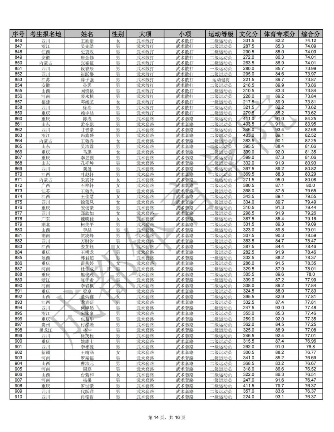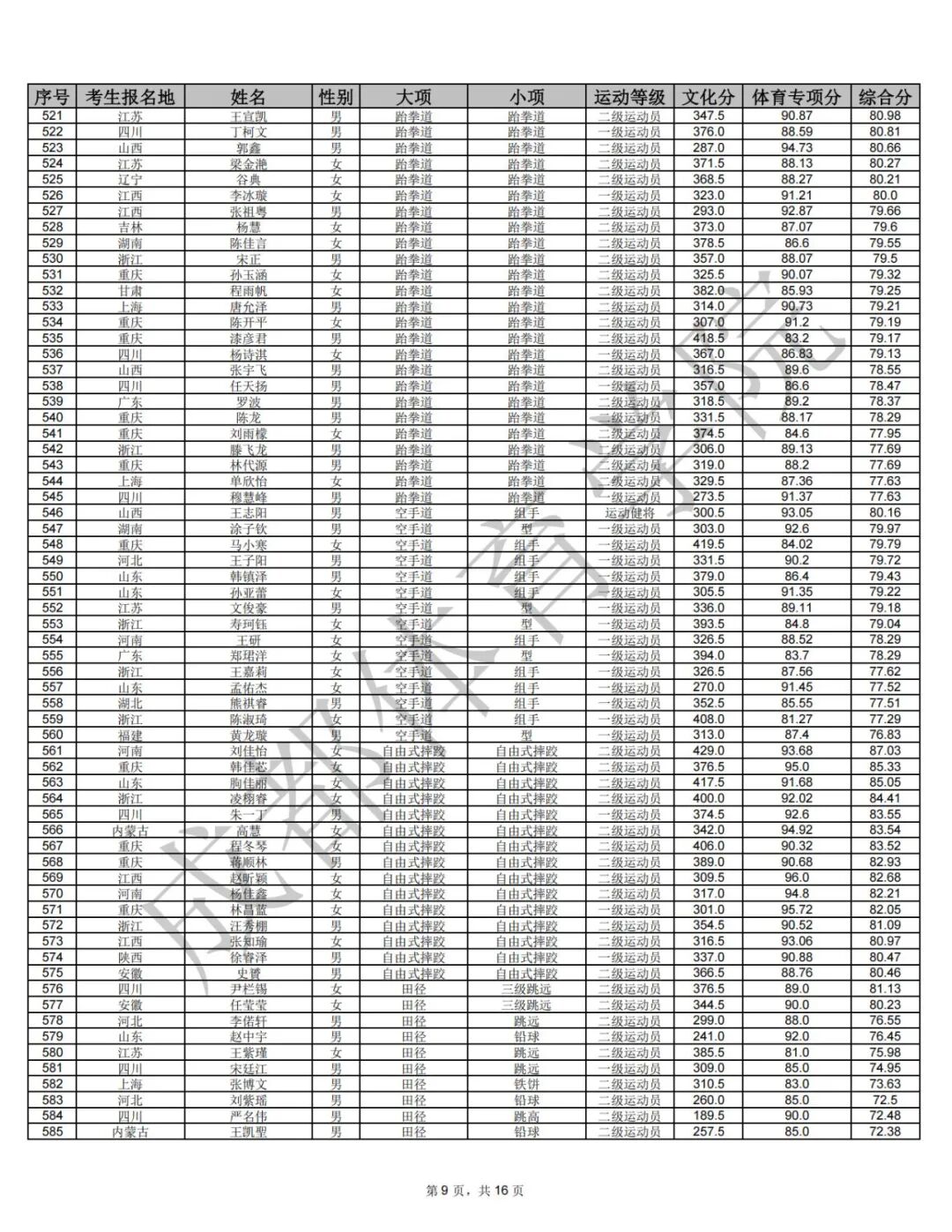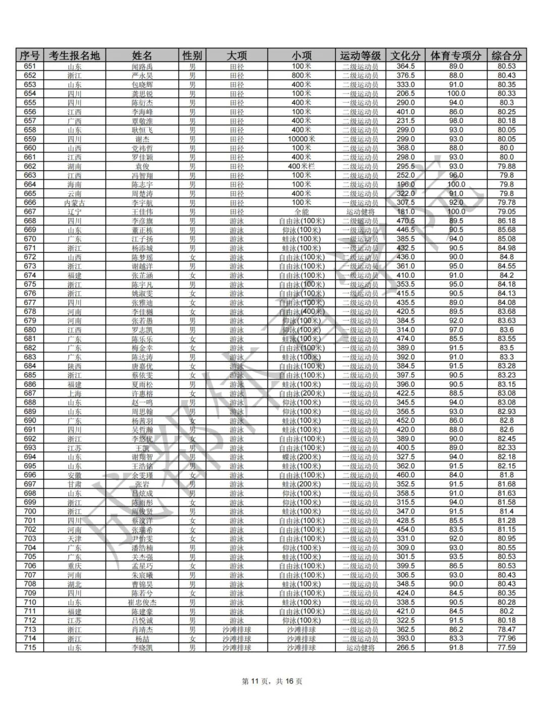 附件:成都体育学院2025年体育单招第一志愿拟录取名单