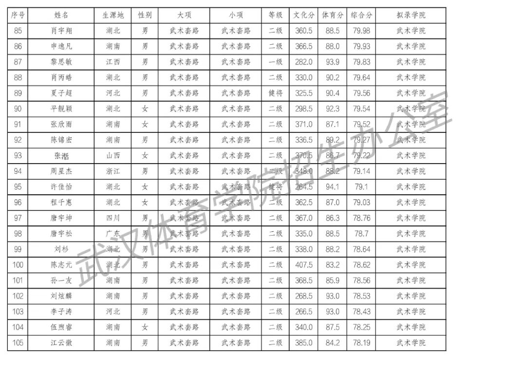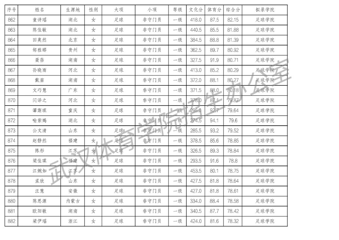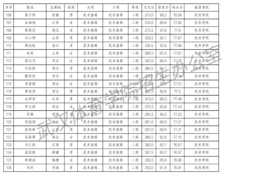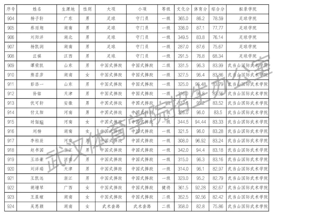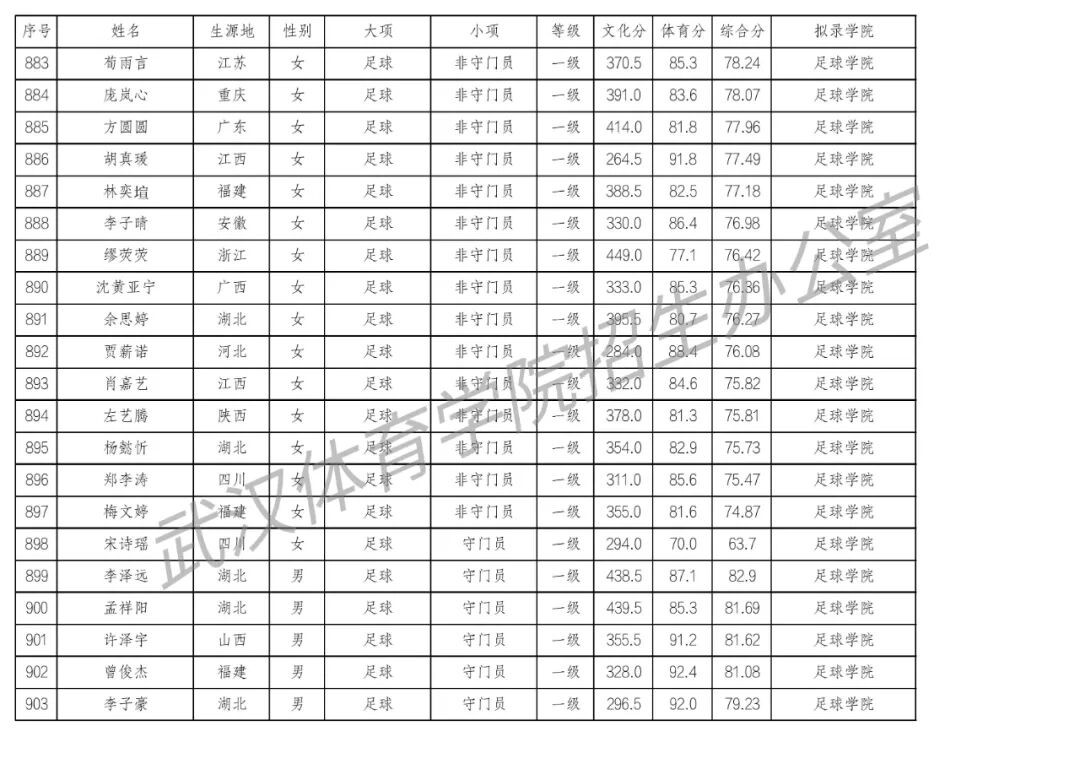 武汉体育学院2025年运动训练、武术与民族传统体育、足球运动专业第一志愿拟录取名单公示