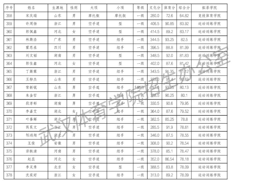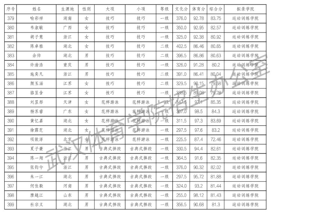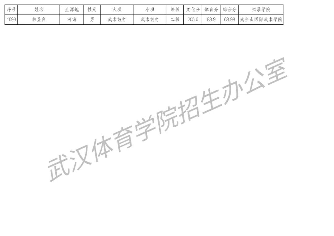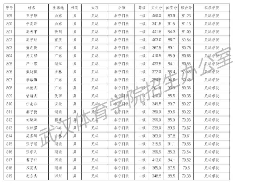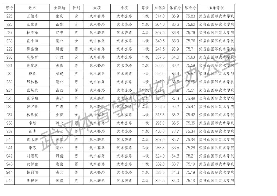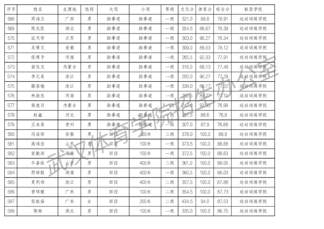 武汉体育学院2025年运动训练、武术与民族传统体育、足球运动专业第一志愿拟录取名单公示