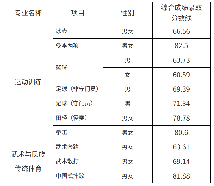 根据国家体育总局办公厅和教育部办公厅关于印发《2025年普通高等学校运动训练、武术与民族传统体育专业招生管理办法》(体科字[2024]256号)的通知要求,学校按程序开展2025年体育单招录取工作,决定拟录取许鑫等93名一志愿考生,现将综合成绩录取分数线和一志愿拟录取名单(见附件)进行公示,公示期5月22日至29日。