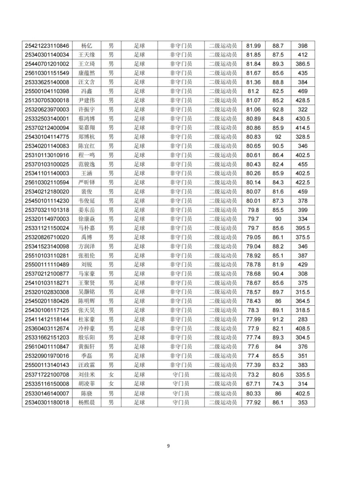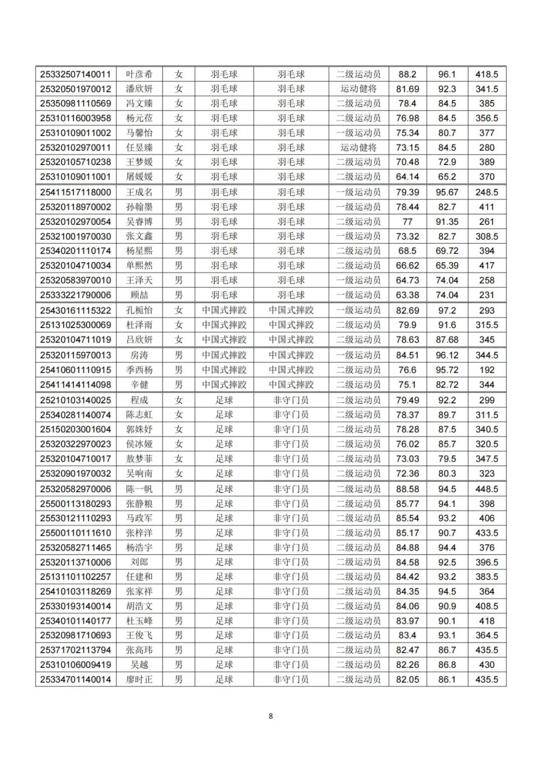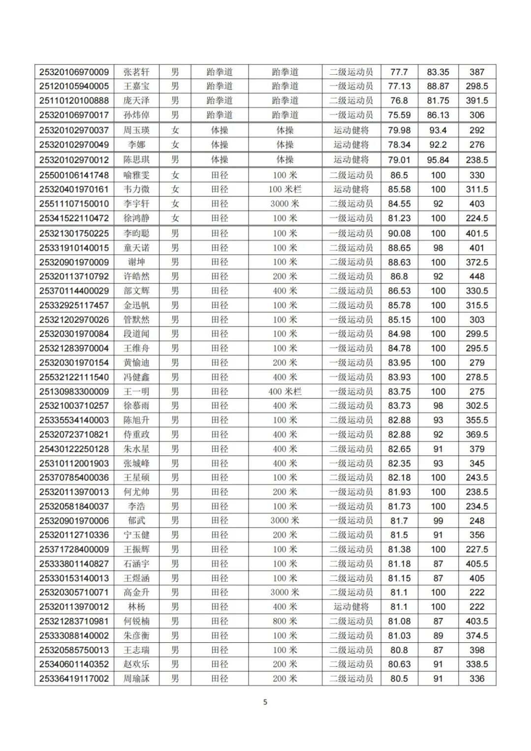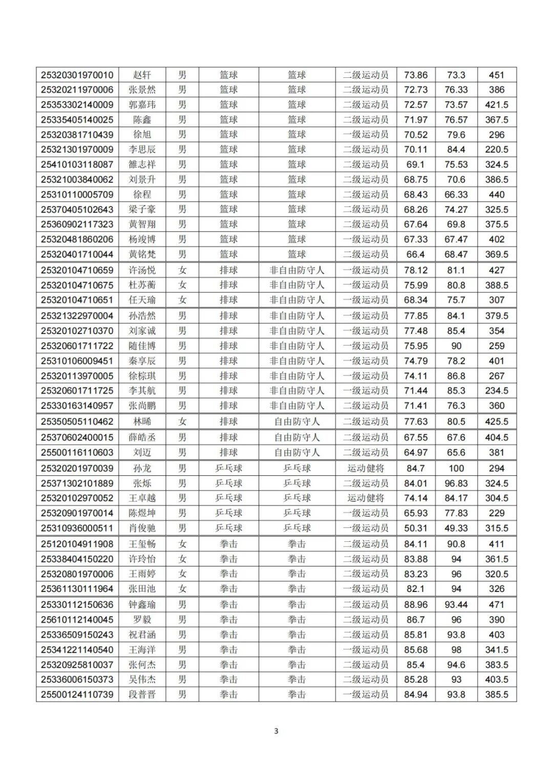 南京体育学院2025年运动训练、武术与民族传统体育专业录取原则及一志愿拟录取名单公示