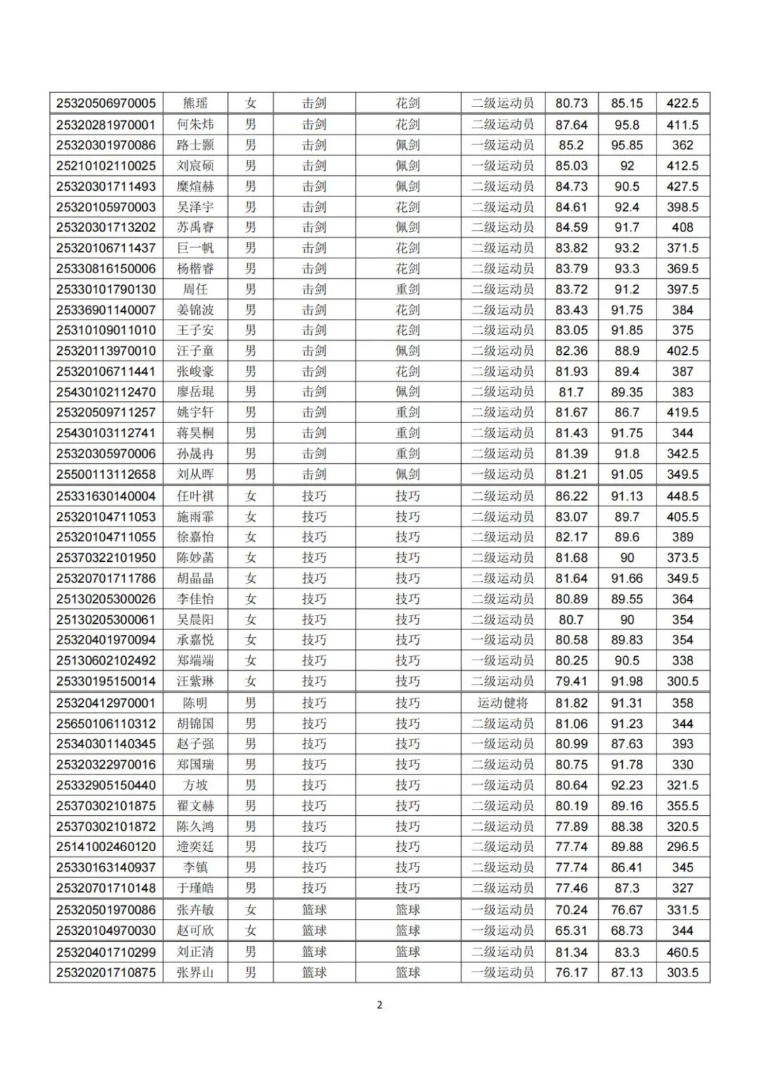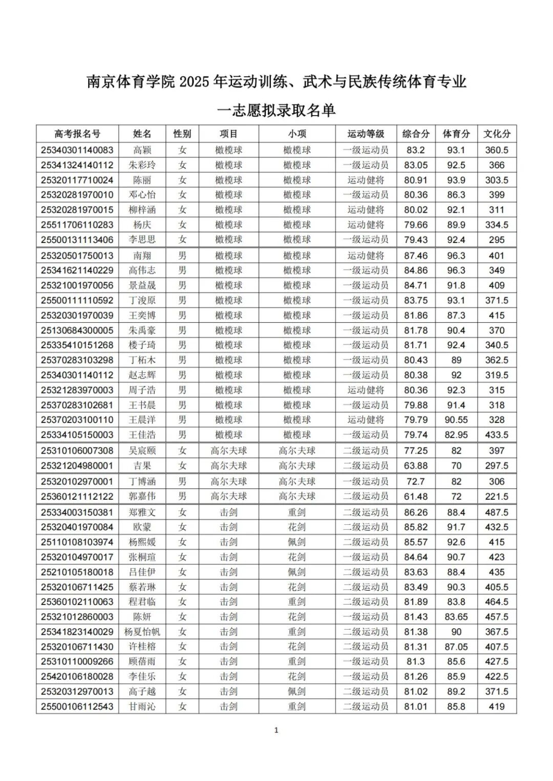 附件:南京体育学院2025年运动训练、武术与民族传统体育专业一志愿拟录取名单(点击查看)