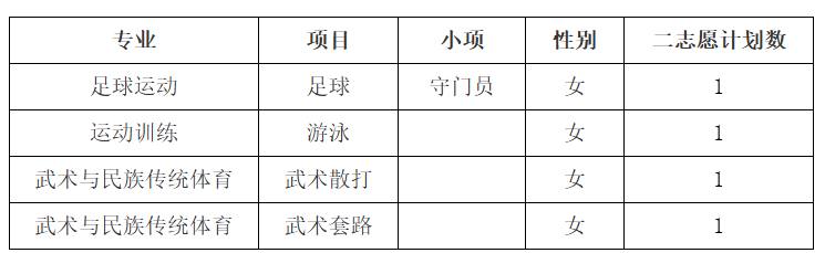 一志愿拟录取后,我校部分项目未完成的计划将在二志愿录取,具体如下: