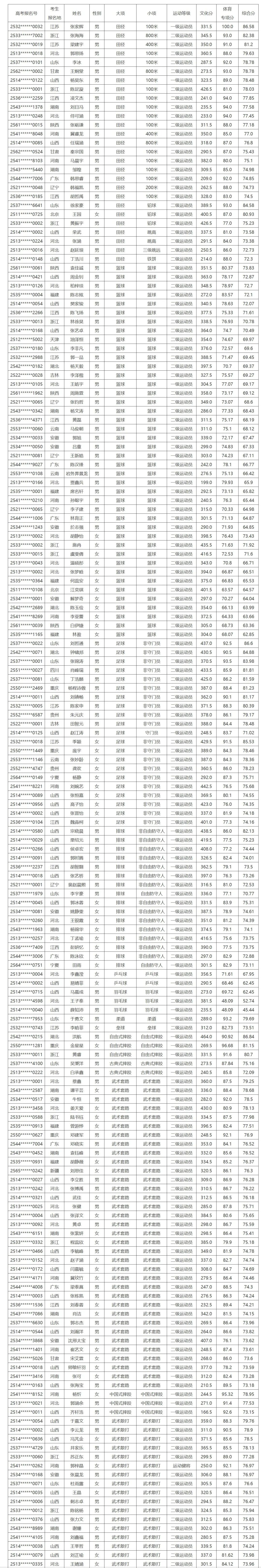 山西师范大学2025年运动训练、武术与民族传统体育专业一志愿拟录取名单公示