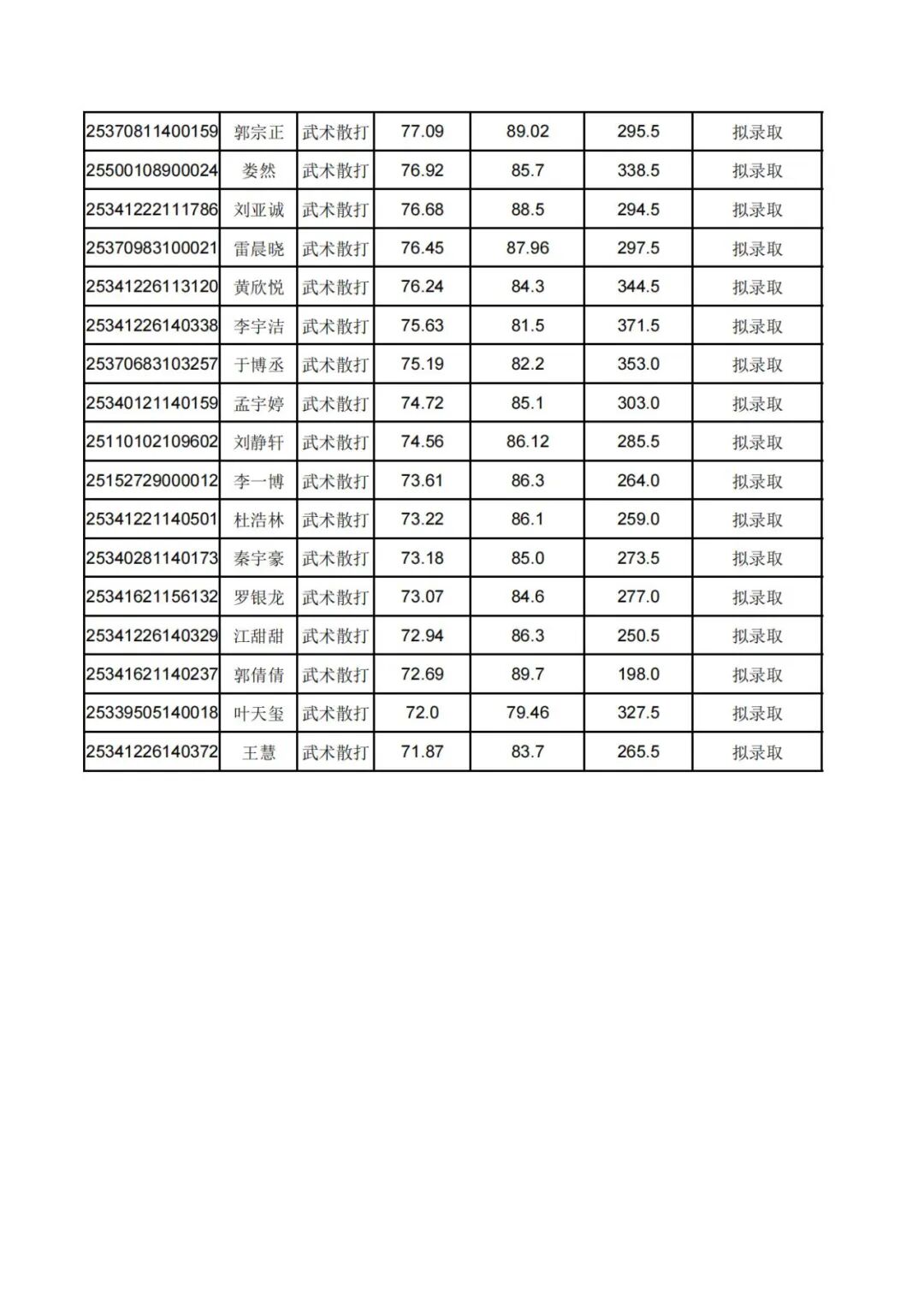 2025年武术与民族传统体育专业拟录取名单公示