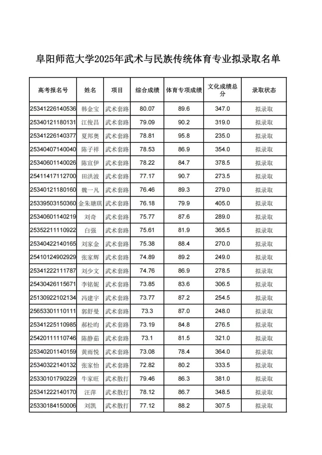 附件【阜阳师范大学2025年武术与民族传统体育专业拟录取名单.pdf】
