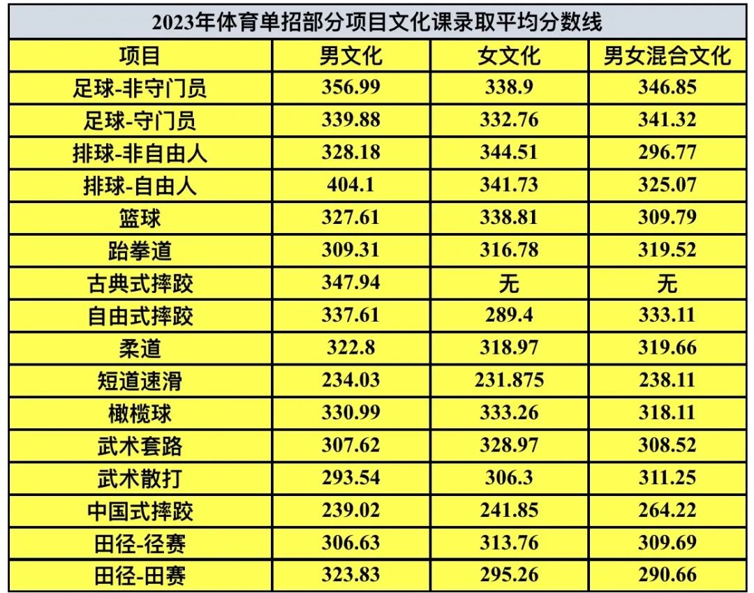 根据数据显示,2023年体育类单招的文化课分数线也成为影响录取的重要因素。
