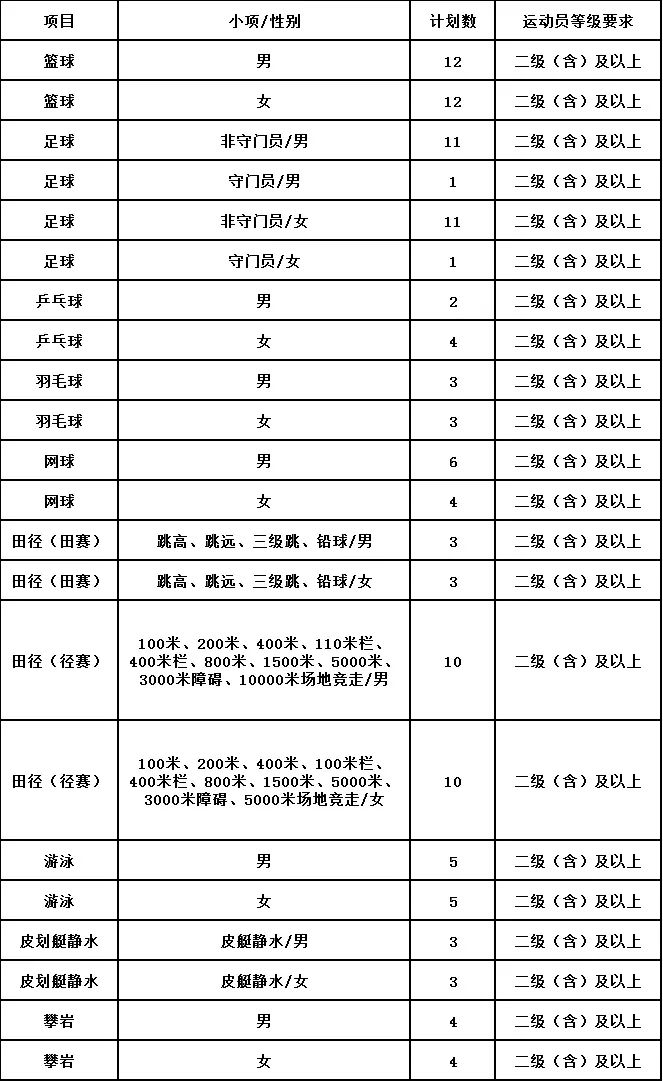 (一)符合2025年普通高等学校招生考试(以下简称普通高考)报名条件,且已参加生源所在地省级招生考试机构组织的普通高考报名(具体按各省级招生考试机构要求执行)。(二)具备我校招生项目的二级(含)以上运动员技术等级称号。考生运动员技术等级以“国家体育总局运动员技术等级系统”数据信息为准。考生本人的运动员技术等级项目应与报考的招生项目一致,考生如具备所报考项目的多个运动员技术等级证书,报名时需填报所有符合报名要求的运动员技术等级证书。(篮球项目考生使用篮球或三人篮球运动员技术等级证书均可报名,按照篮球项目考试方法与评分标准参加篮球专项考试)。(四)报名考生的等级证书审批日期为:夏季项目为2015年1月1日至2025年3月10日。(五)报名考生身体健康,符合教育部颁布的《普通高等学校招生体检工作指导意见》要求及有关补充规定要求。(一)报名地址:统一在“中国运动文化教育网”(www.ydyeducation.com)或“体教联盟APP”中“普通高等学校运动训练、武术与民族传统体育专业招生系统”(以下简称“体育单招系统”)进行注册并报名。(二)注册:夏季项目注册时间为2025年2月1日12:00至3月10日12:00,通过“体育单招系统”完成注册,校验运动员技术等级信息。考生在注册过程中,如发现本人运动员技术等级信息有误,应及时联系等级证书授予单位进行信息更正,确保在注册报名截止日期前完成报名。(三)报名:已完成注册的考生应通过“体育单招系统”签订《反兴奋剂承诺书》、填报志愿并缴纳考试费。拒不签订《反兴奋剂承诺书》的考生,视为主动放弃考试资格。考生完成缴费视为报名成功,完成缴费后,考生不得再对报名信息进行修改。夏季项目报名时间为2025年3月1日12:00至3月10日12:00。1.考试科目:语文、数学、政治、英语,每科考试分值150分,总分600分,使用国家通用语言文字作答。