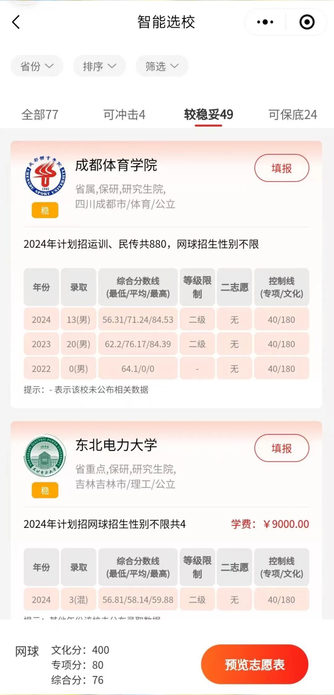 【体育志愿通小程序——为你的体考志愿选校提供精准指导】