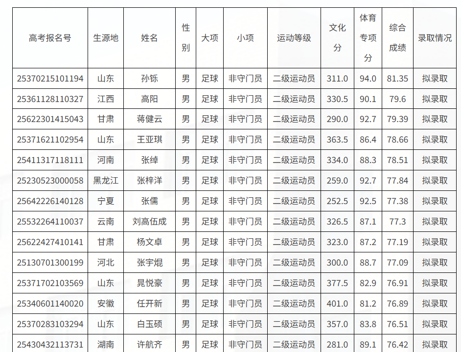最终录取名单以教育部、国家体育总局及各省级招生主管部门审核通过为准。