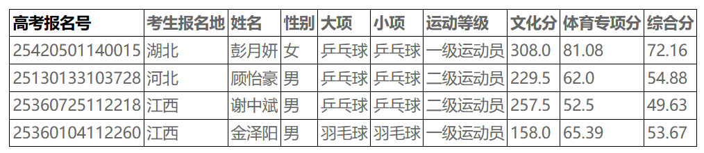 正式录取名单以教育部、国家体育总局及各省招生考试机构审核通过为准。