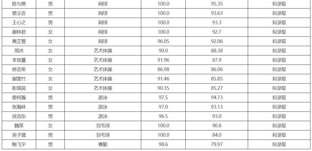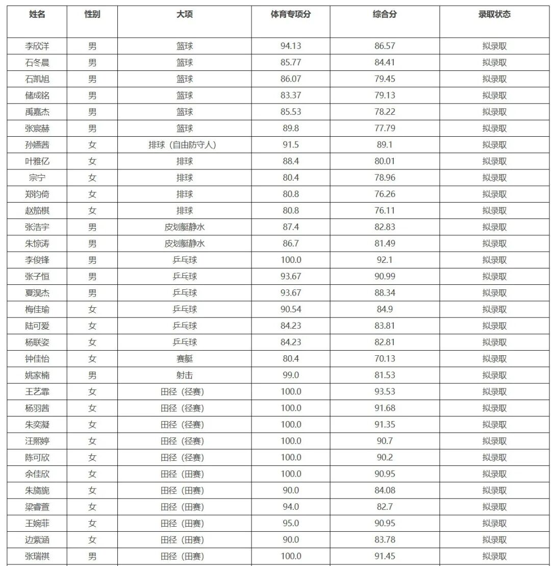浙江大学2025年运动训练拟录取名单公示
