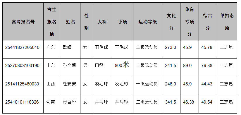 山西大同大学2025年体育单招拟录取名单(二志愿)