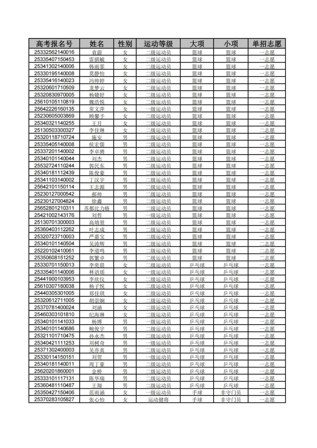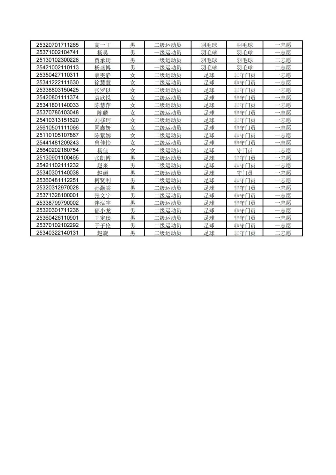 本网讯 现将我校2025年运动训练专业拟录取名单予以公示。
