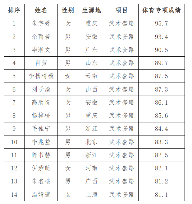 按照教育部有关文件和《厦门大学2025年高水平运动队招生简章》等要求,现将我校2025年高水平运动队专业测试合格名单予以公示,公示期截止6月9日。