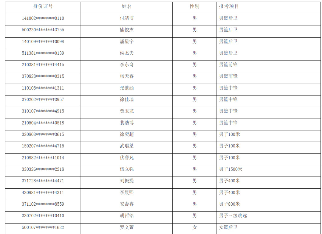 华东师范大学2025年高水平运动队专项合格名单