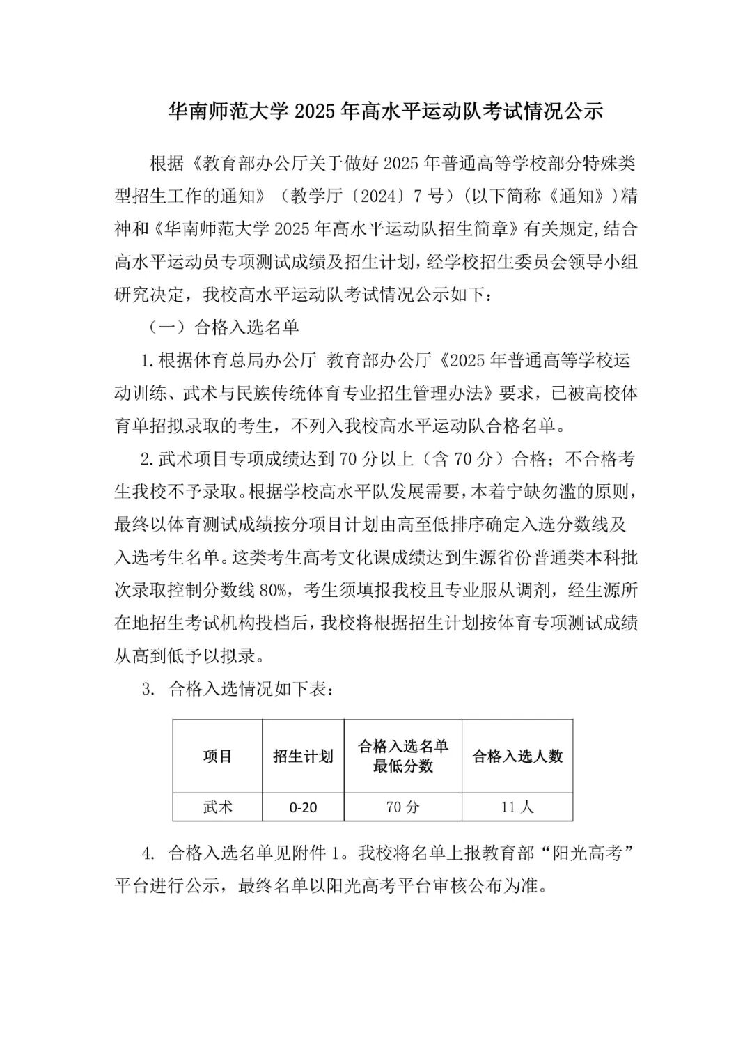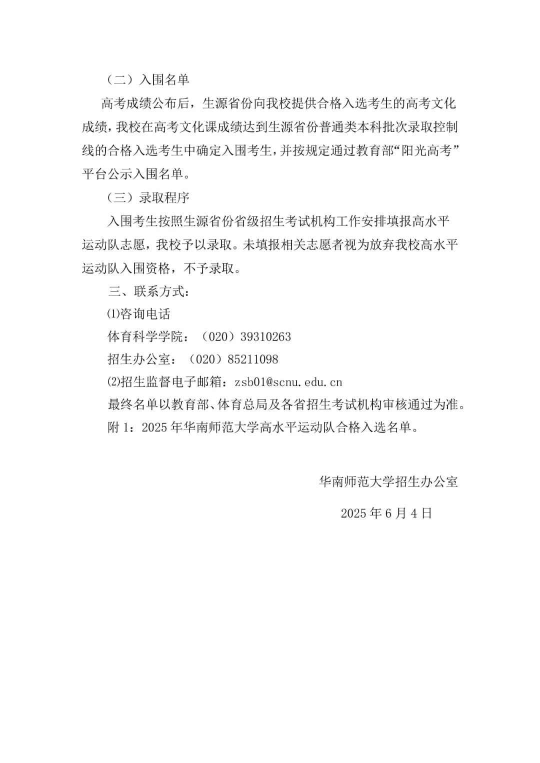 华南师范大学2025年高水平运动队考试情况公示