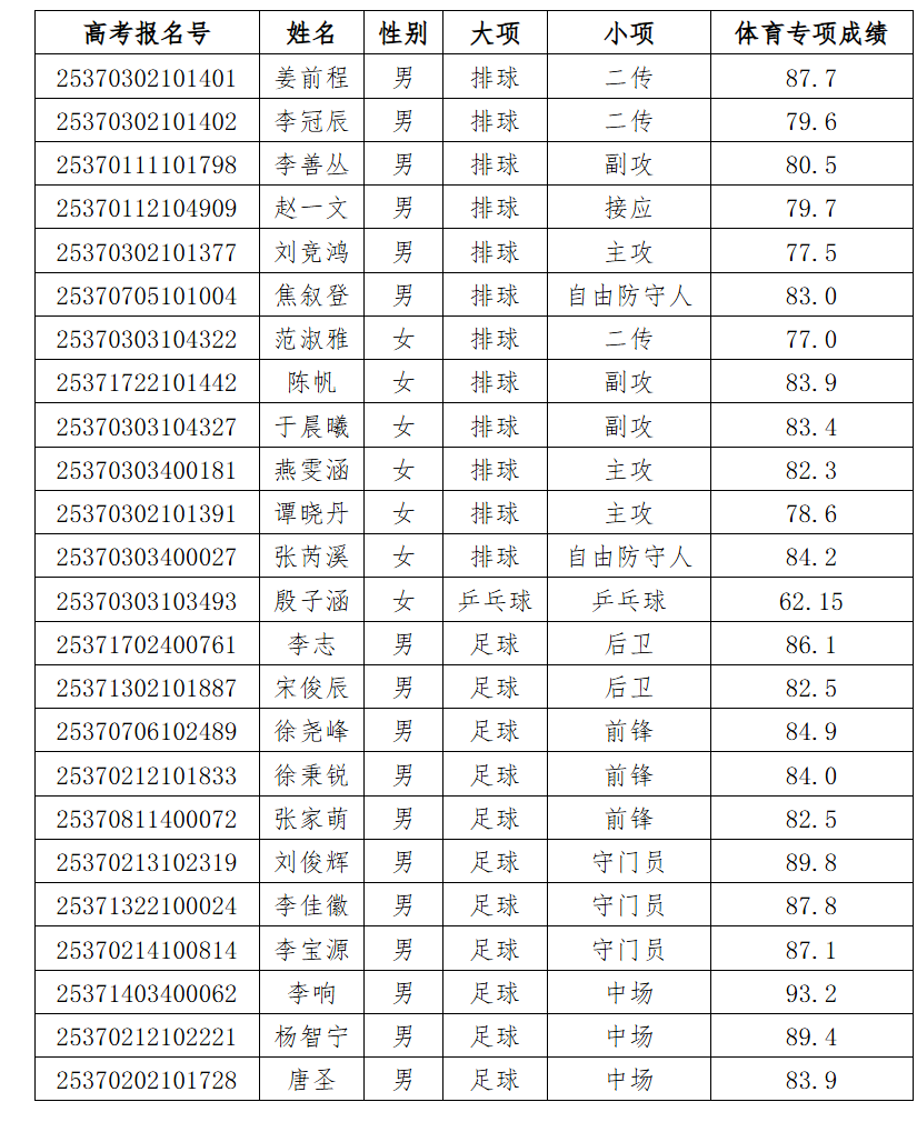 按照《教育部办公厅关于做好2025年普通高等学校部分特殊类型招生工作的通知》和《山东财经大学2025年高水平运动队招生简章》要求,经学校招生领导小组审定,现公示合格名单如下: