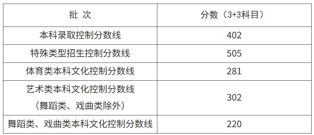 上海市2025年普通高校招生本科各批次录取控制分数线公布如下: