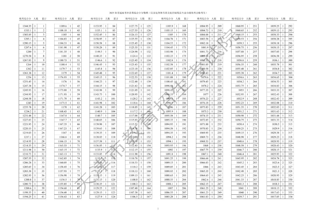 附件:体育类综合分分数段情况
