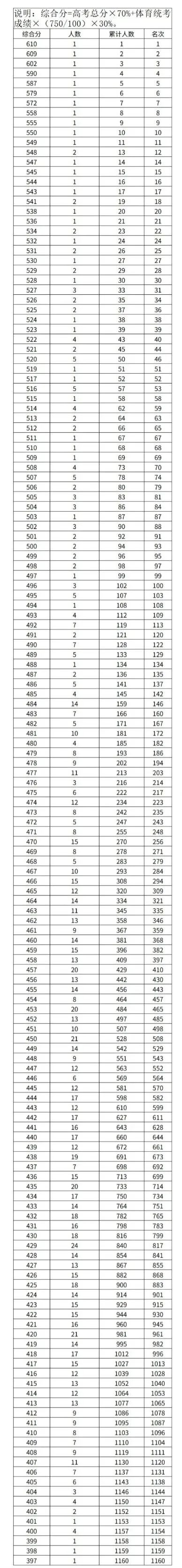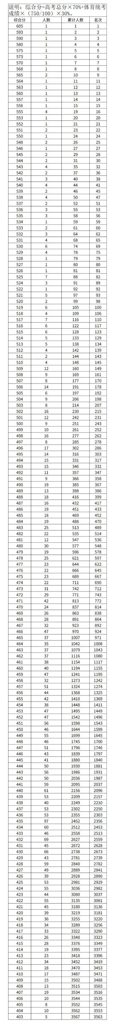 2025年体育类本科(物理)一分一档表(总分=总成绩+全国性加分和地方性加分的最高分)