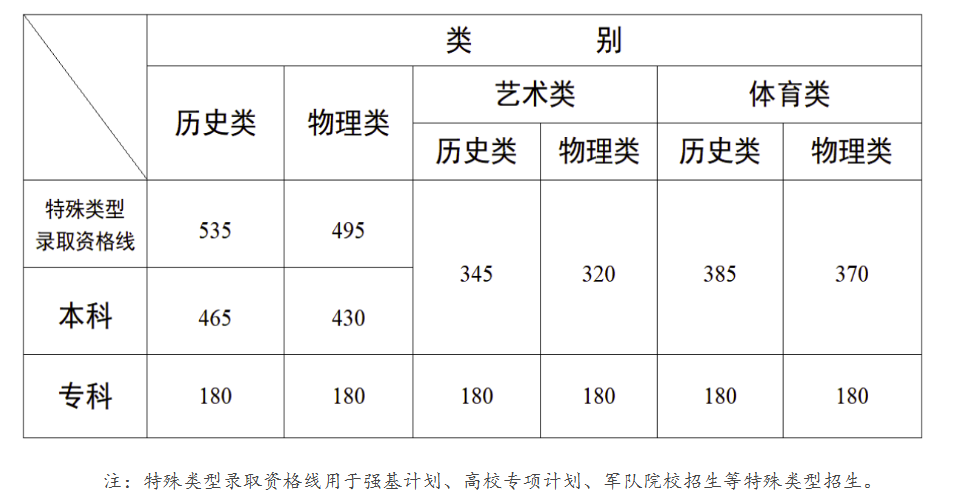 云南省2025年普通高校招生录取最低控制分数线